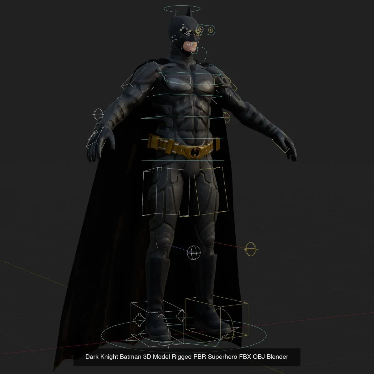Faithful recreation of Bale's iconic Batman look, fully rigged with clean topology and optimized materials for realistic shading.