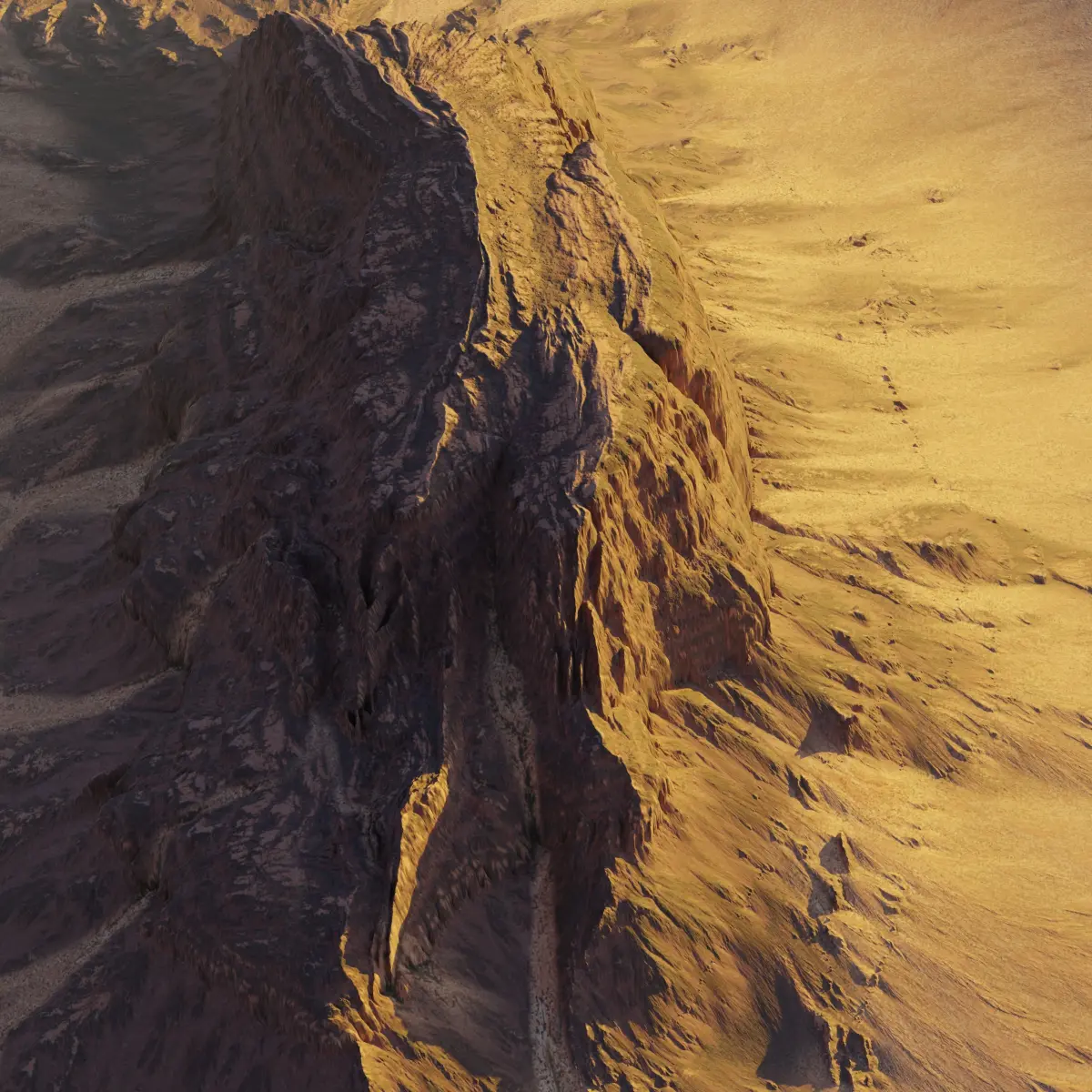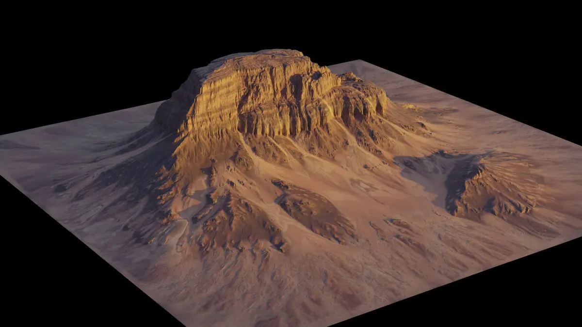 This pack contains 3 different cinematic desert mesa terrains. The main terrain from the cover picture and two additional variations. All in similar style. Every terrain can be created either via displacement using the height map or the 3D Model (OBJ format, in LOD 0 and LOD 1). Diffuse and normal maps in 4K are included.
