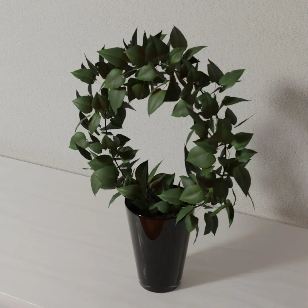 Circle shaped Pot plant delivered with 4K textures for interior 3D scenes. Decent amount of polygons, easily increased if needed. The leafs is flat planes with some geometry to give a realistic shape but still keep polygon amount low