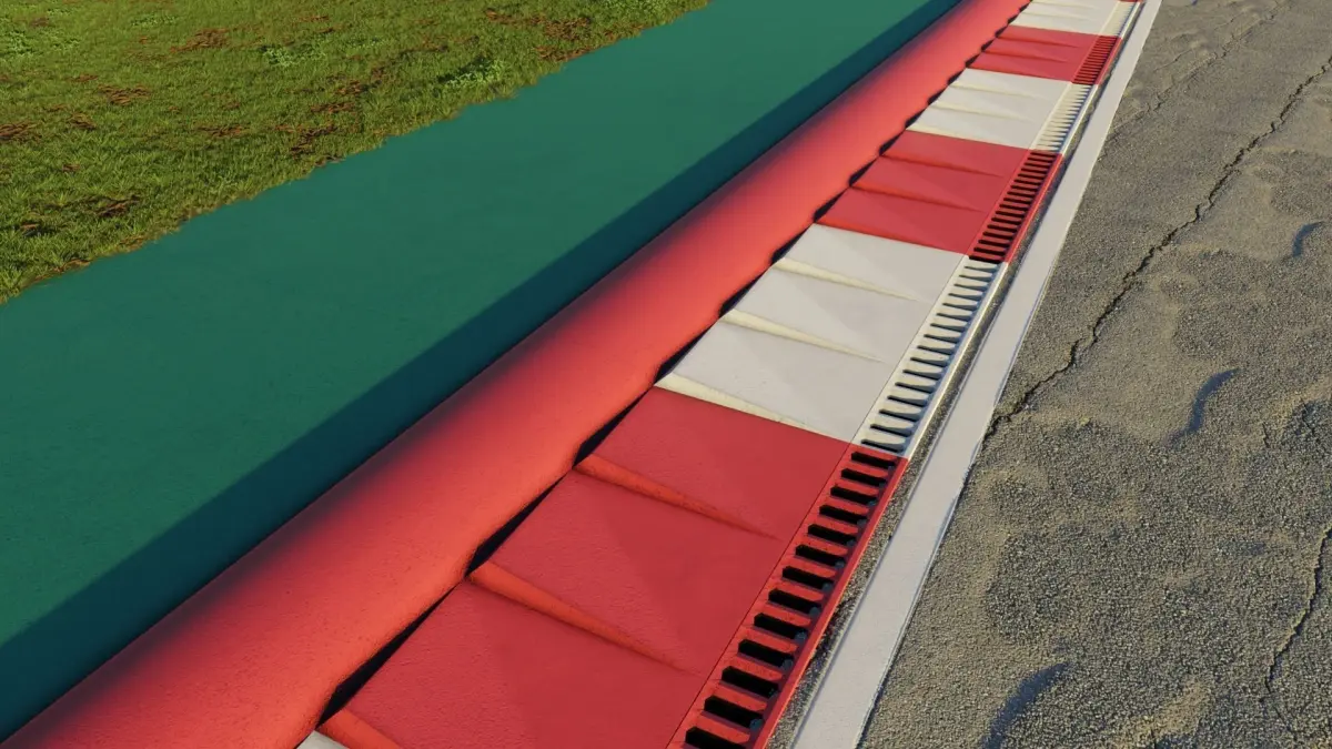 Circuit Kerbs. The file includes both simple kerb and kerb+extension. Grass and Asphalt not included. Circuit Kerbs - Array + Curve Modifiers with Start and End Caps.