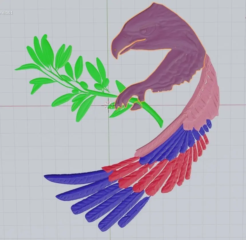 The multi-colored photos will indicate that there are multiple sepearte piece rows of feathers unlinked in the Blend file. So if you just wanted some extra feather geometry they are yours with the file. The head and olive branch are also individual pieces. Most of the olive branch is not a manifold they are mostly individually drawn and placed together. The bottom of all of the shapes is open this is for CNC cutting. If you would like to see the orginal art copy paste google [Mint Artistic Infusion Program (AIP) artist Ronald Sanders created the design, which was sculpted by Mint Medallic Artist Phebe Hemphill.] ; they are amazing artist - THIS ISN'T A SCAN I ATTEMPTED TO RECREATE THEIR WORK because its amazing- amoungst all the coin faces I have looked at and studied this work has a very unique shape and value. As I said before it can be found on an uncommon coin commemerating WWII.