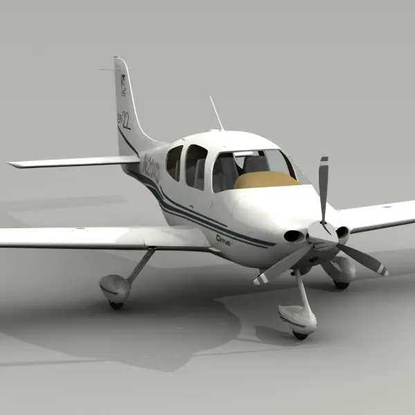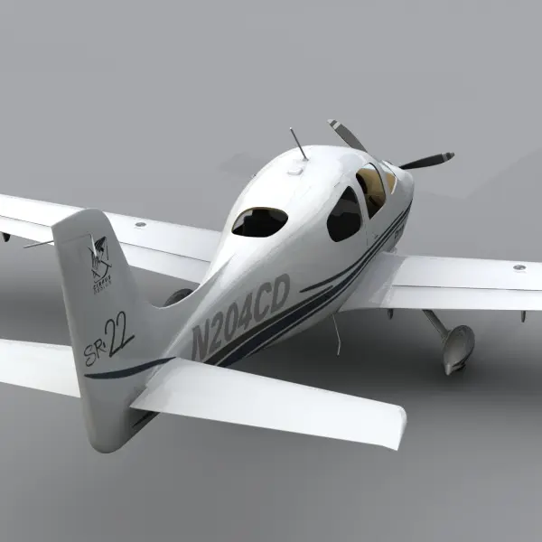 Cirrus Design SR22 airplane. Lightwave version; propeller is set-up to spin, control surfaces and doors are separate layers.
