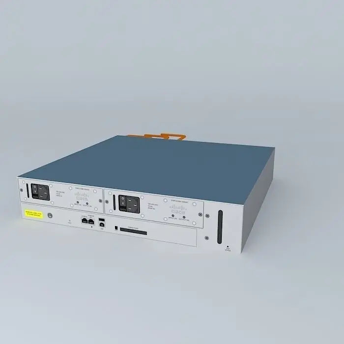 This 3D model was originally created with Sketchup 13 and then converted to all other 3D formats. Native format is .skp 3dsmax scene is 3ds Max 2016 version, rendered with Vray 3.00 Cisco 4900M2 10-GE ethernet switch with some X2 cables shown.