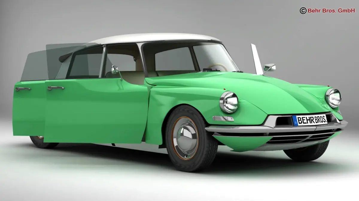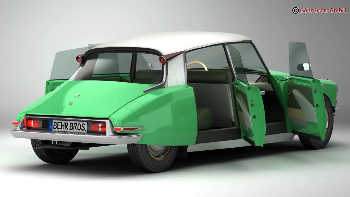 Accurate very high definition Citroen DS 19 model with highly detailed interior fully textured. Headlights and taillights are modelled, doors can be opened. The tires are modeled.