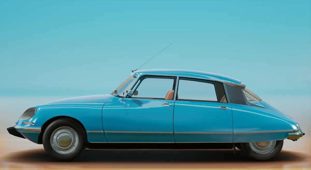 The good quality model of the Citroen DS 20. It was modeled in MODO. This model has a perfect mesh and good quality UVsAlso, this model might easily integrate into a vehicle game, because it has a prepared skeleton and materials.