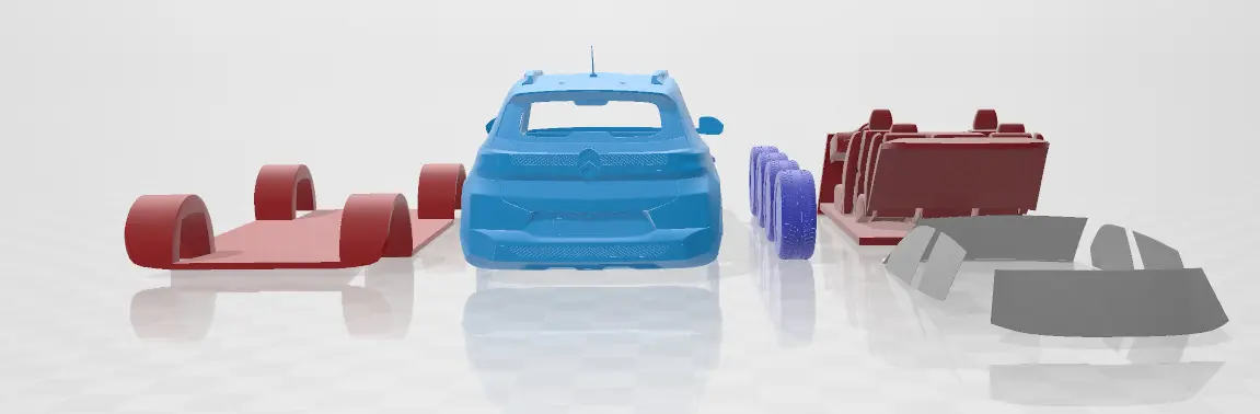 This STL model set features a fully separable 3D printable version of the 2024 Citroen e-C3, designed for enthusiasts and collectors. The modern electric hatchback is carefully detailed, with individual parts optimized for easy printing and assembly. Ideal for those looking to create a scale model with realistic components.