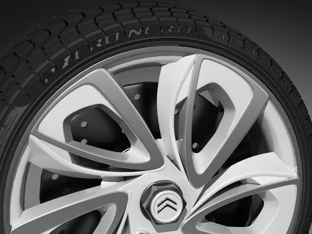 Citroen GT wheel detailed subdivision model. Vray shaders and tyre texture included