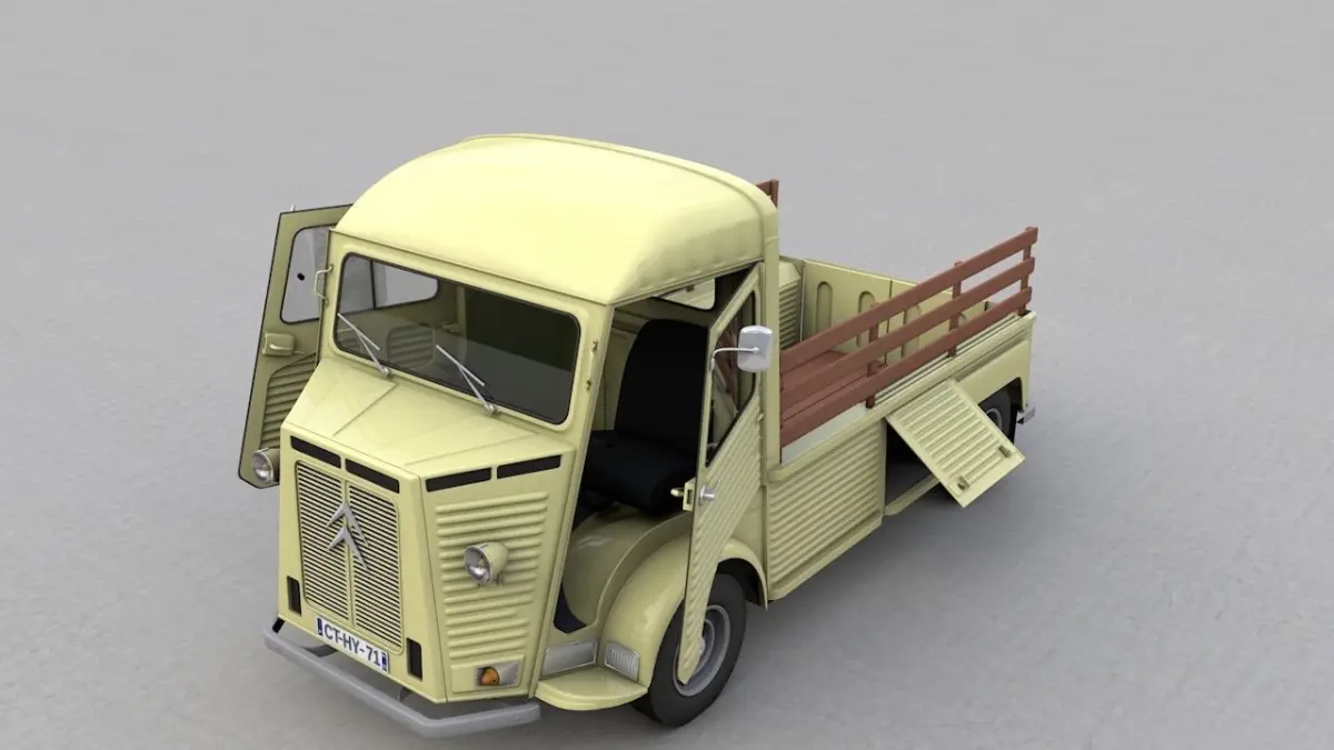 High detailed 3D model CITROEN HP TYPE PLATEAU 1971, from inside and outside.