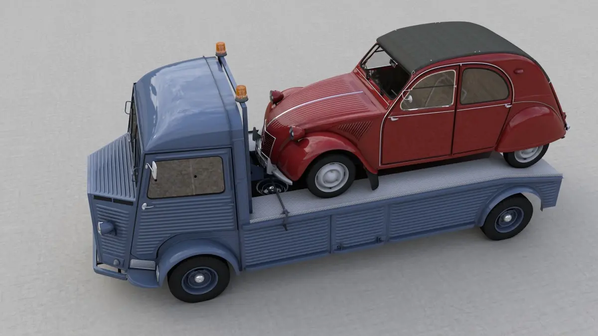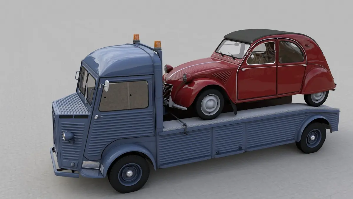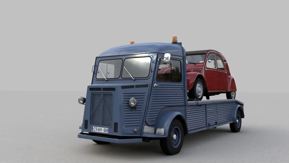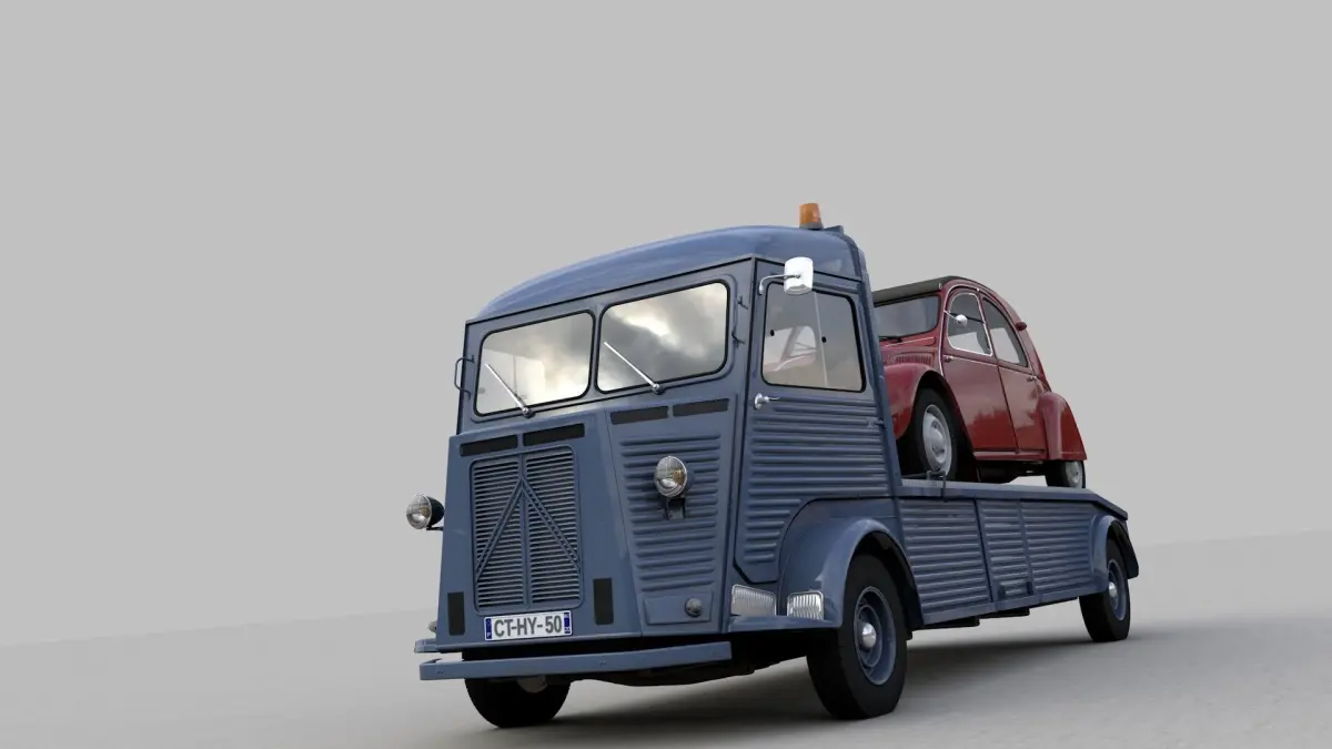 High detailed 3D model CITROEN HY TRUCK 1950 AND CITROËN 2CV AZ 1957, from inside and outside.