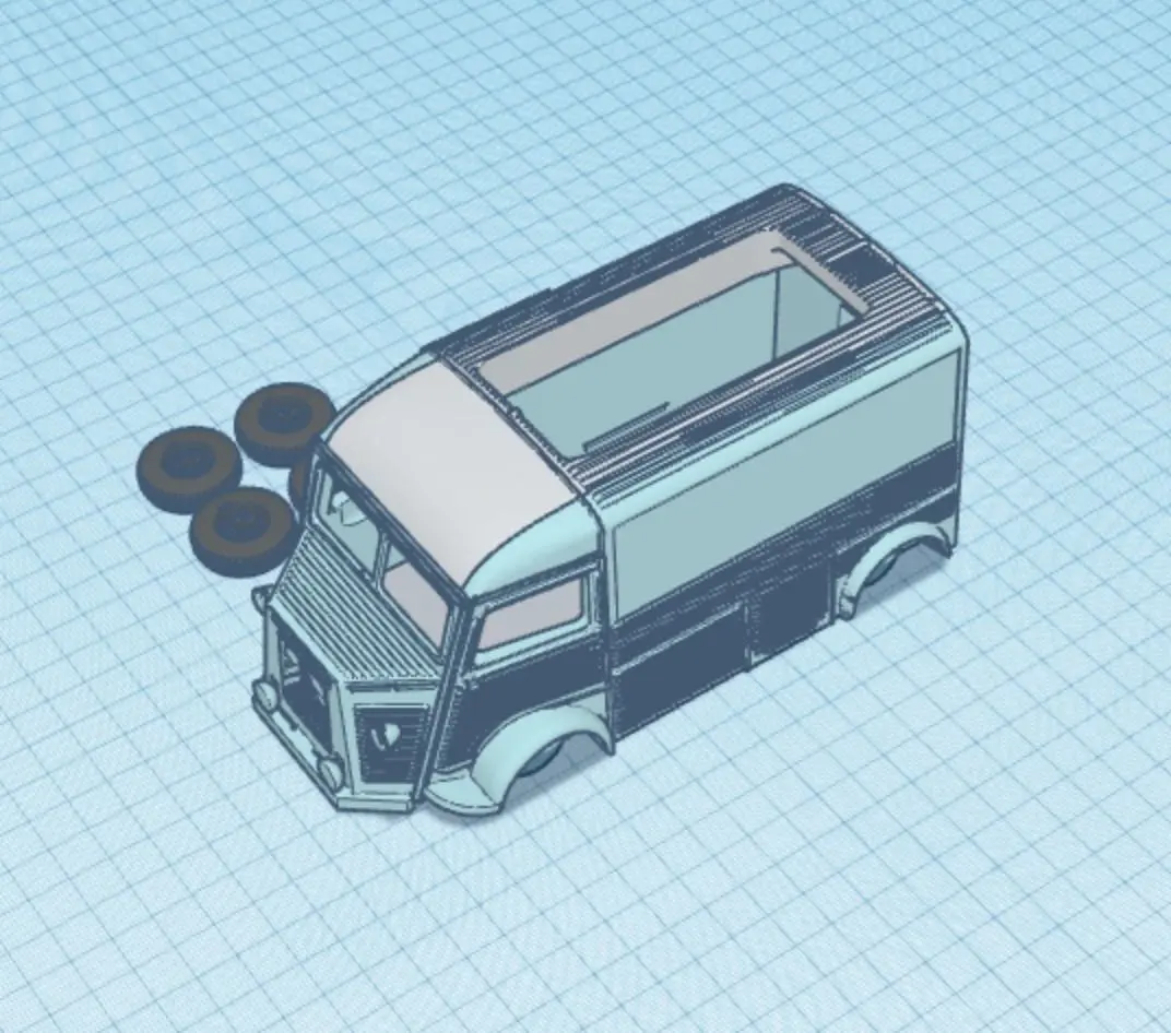 1950 Citroen H Van as a storge box. Designed for 3D FDM printing. This is a fun project that has the look of the original but designed for ease of printing.Print all objects flat, no supports needed.Use it for storing your phone, pencils, napkins, sugars, keys, anything that fits. It has a generous opening at the top and is easy to print.There are 6 body parts and a set of wheels. Instructions included.