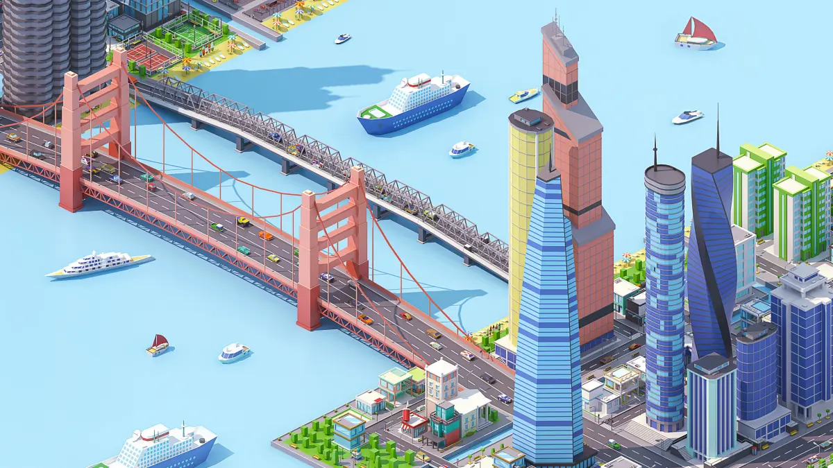 City 3 is a package of low-polygon 3D models optimized for game engines. It includes 430 assets such as landscapes, buildings, stadiums, and transportation.