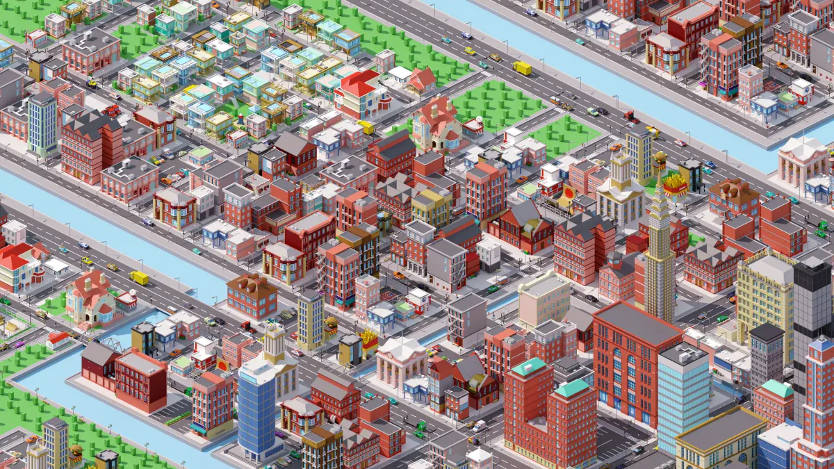 City 2 - https://www.cgtrader.com/3d-models/exterior/cityscape/tile-pack-city-3d-low-poly-2