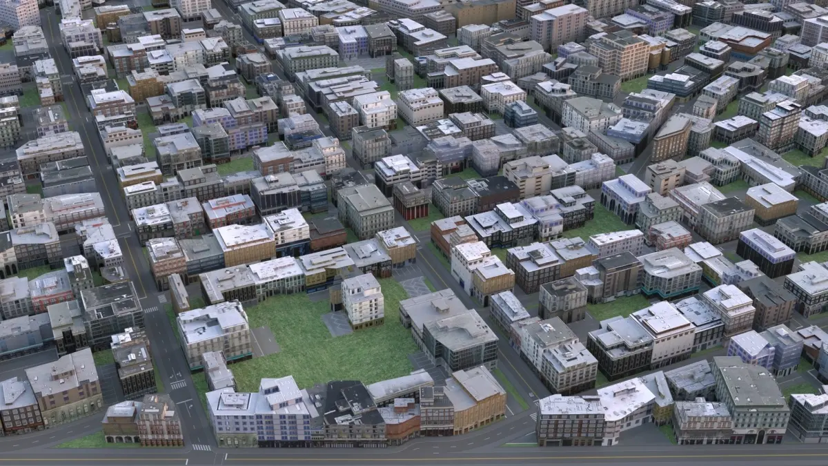 3d model of the detailed City. Rendered in 3ds max 2022 Corona render 8. Scene is ready for render with hdri map.