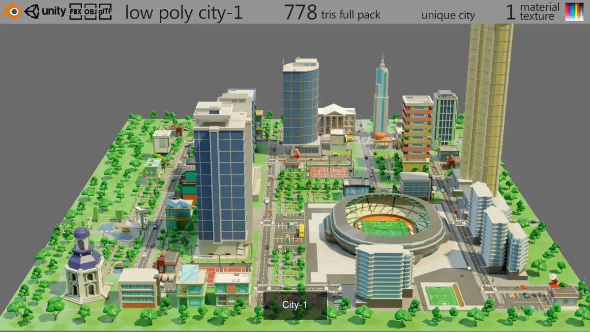 The package has all the components to create any city! Used for games, rendering, advertising.