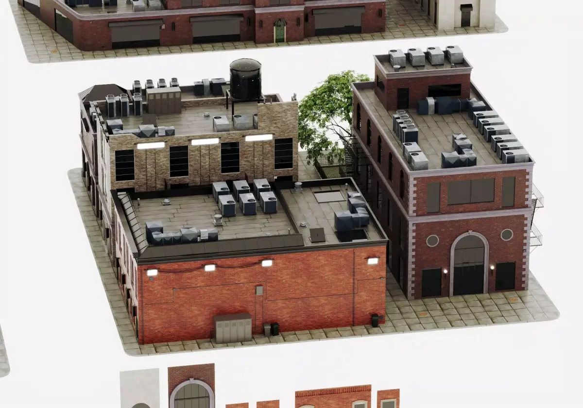 This extensive 3D asset pack includes 15 unique urban residential buildings in classic brownstone and apartment styles, featuring detailed brick facades, fire escapes, cornices, rooftop water towers, HVAC units, chimneys, and varied architectural elements. Also included are bonus props such as windows, doors, storefronts, ladders, and rooftop accessories for customization. Models are low-poly optimized with high-quality textures, clean topology, and realistic details – perfect for creating dense city blocks in New York-inspired scenes. Ideal for game development, urban visualizations, animations, VR/AR cities, film sets, or architectural renders.