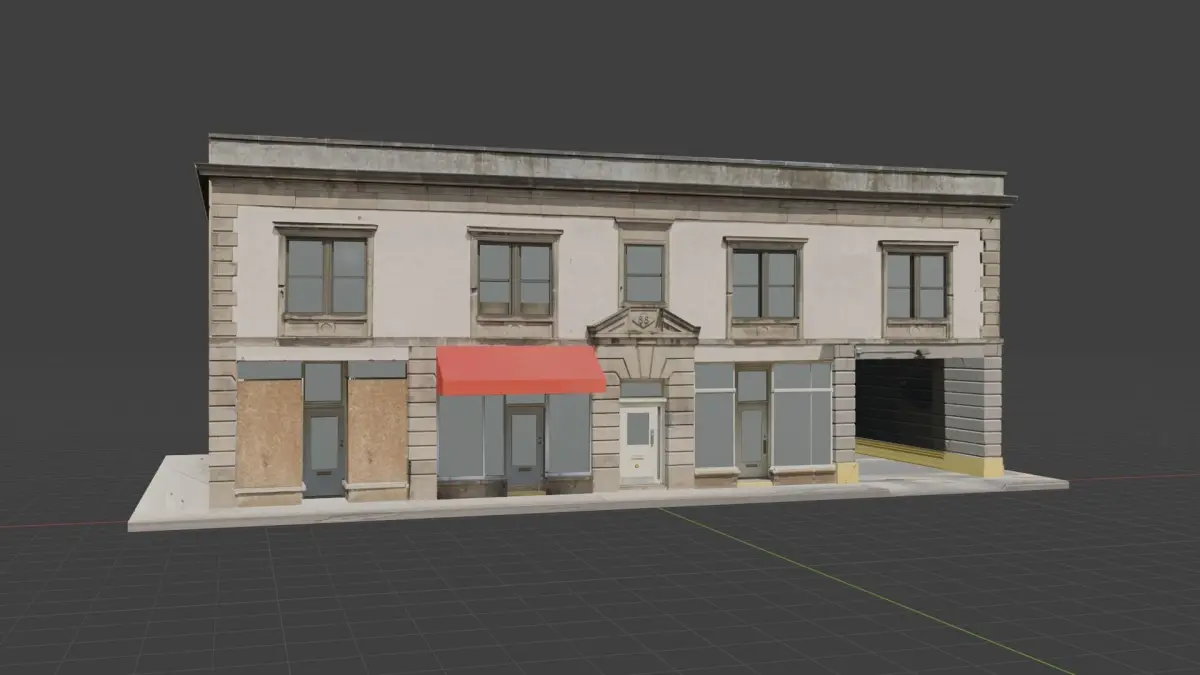 FeaturesThis building was created with the Image As Planes Method In Blender Model created with Blender 2.93. Blend File works with Cycles and Evee. Preview rendering made a few simple area lights. The lighting is included in the Blend File. High quality polygonal model. Model is fully textured with all materials applied. No special plugin needed to open scene. Models is ready for games and renders.