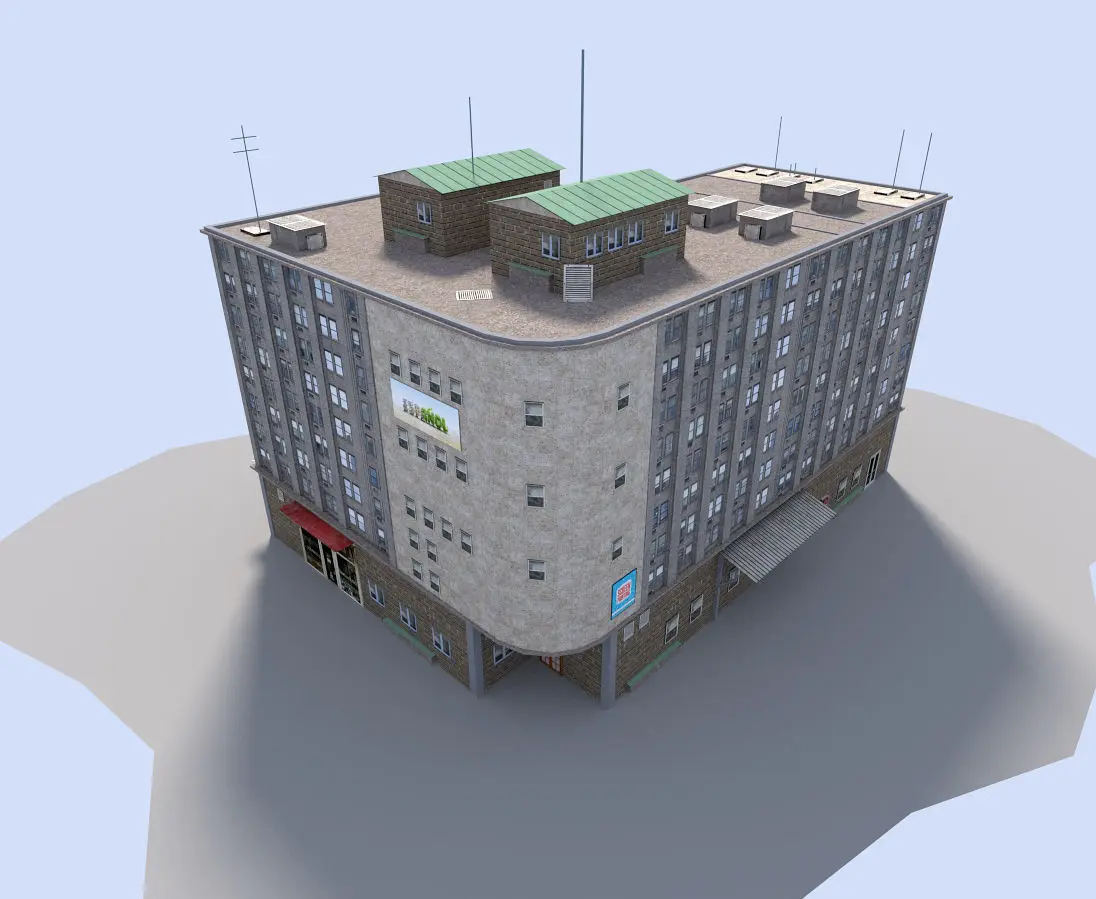 realistic model of city building. detailed textures.