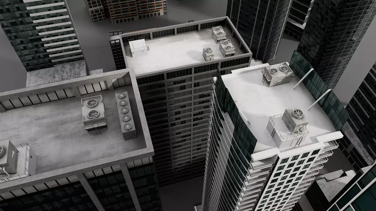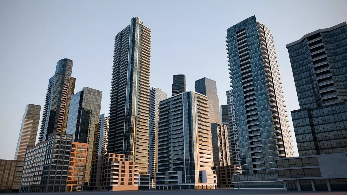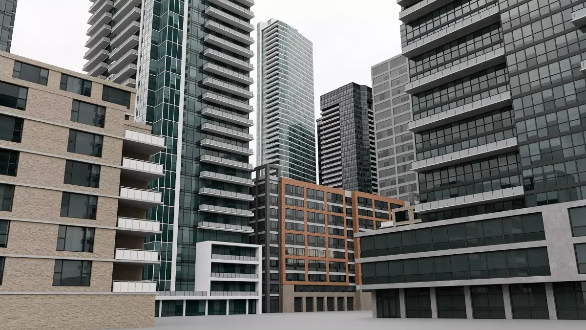 This collection includes 16 high-definition building models designed for modern urban environments. The buildings features detailed rooftop HVAC elements, adding realism for city scenes. Several buildings also include low-poly versions. There is an emission map for night time shots. All textures, files and models are logically named.
