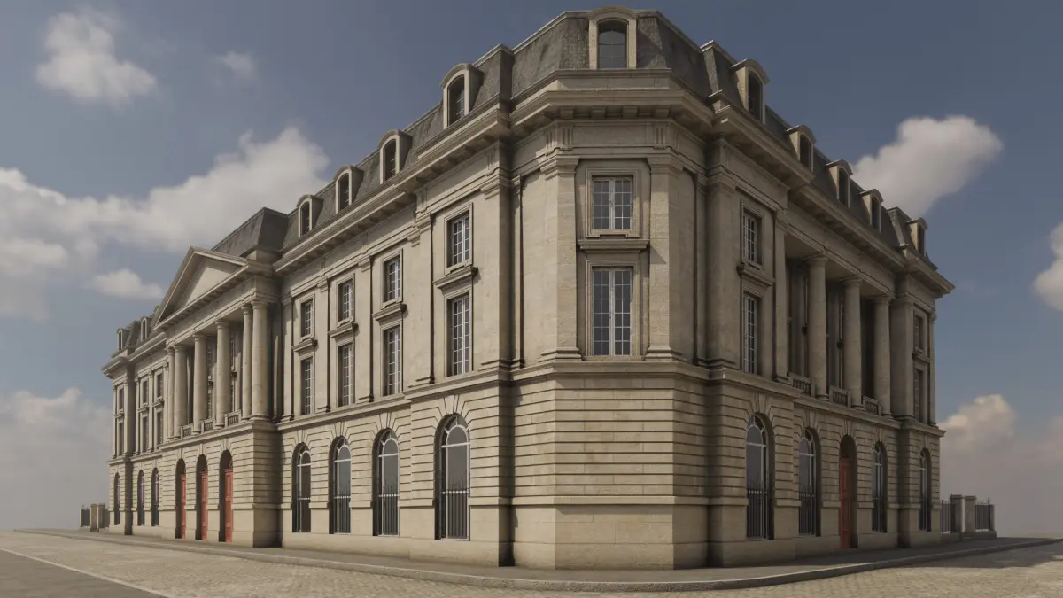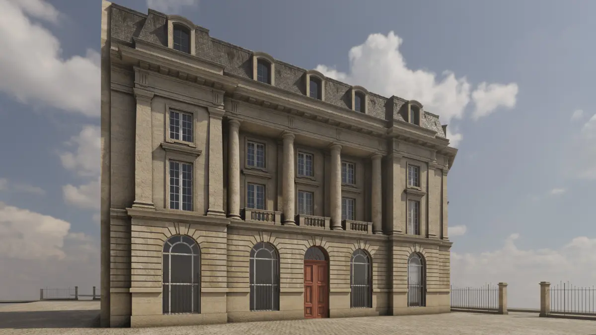 Detailed model of a classical building. Suitable for high resolution close-ups. Real world scale. Cameras are placed at eye level (~1.65m / 5'5''). Scale figurines are 1.80m / 5'11'' in height.
