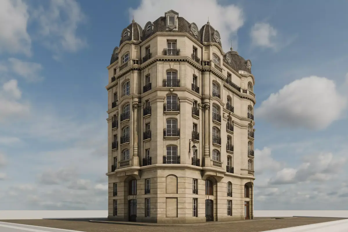Detailed model of a late 19th century parisian building. Suitable for high resolution close-ups. Real world scale. Cameras are placed at eye level (~1.65m / 5'5''). Scale figurines are 1.80m / 5'11'' in height.