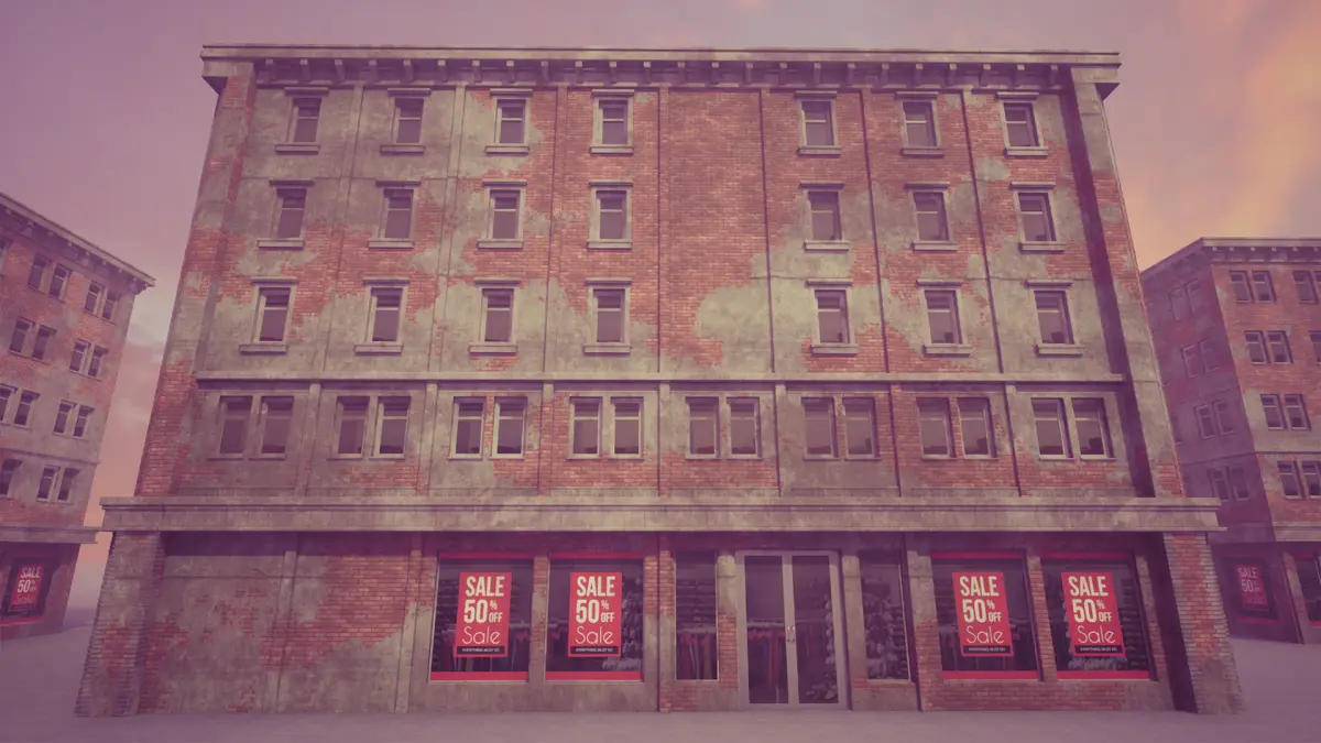 City building modular kit. Building looks like it was built in the 1960s, but in modern times. Highly customizable materials allows to change color of texture, blend two together and add dirt. Package contain seamless textures: 3 brick wall, 3 concrete and 4 plaster. Also 4 interiors textures and 16 ads on shop windows. Companies names are fake, non-existing in real world. Include whole Unreal engine 4 project. Materials, and setup works only on Unreal engine 4 !