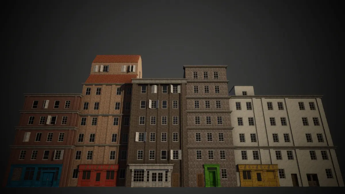 Description:This pack provides the ability to assemble game models of buildings from individual modules right in the engine.There are 72 modules in this pack, which include walls, windows, small shops, roofs, and so on. Also in the pack there are 7 tile textures, which include brick walls and roofs. As a bonus to everything in the pack, a shader was added that allows you to change the paint on the modules. By purchasing this pack you also get a demo scene on the Unity engine and source files of the format: .blend; .spp; fbx; .sbs; .sbsar.