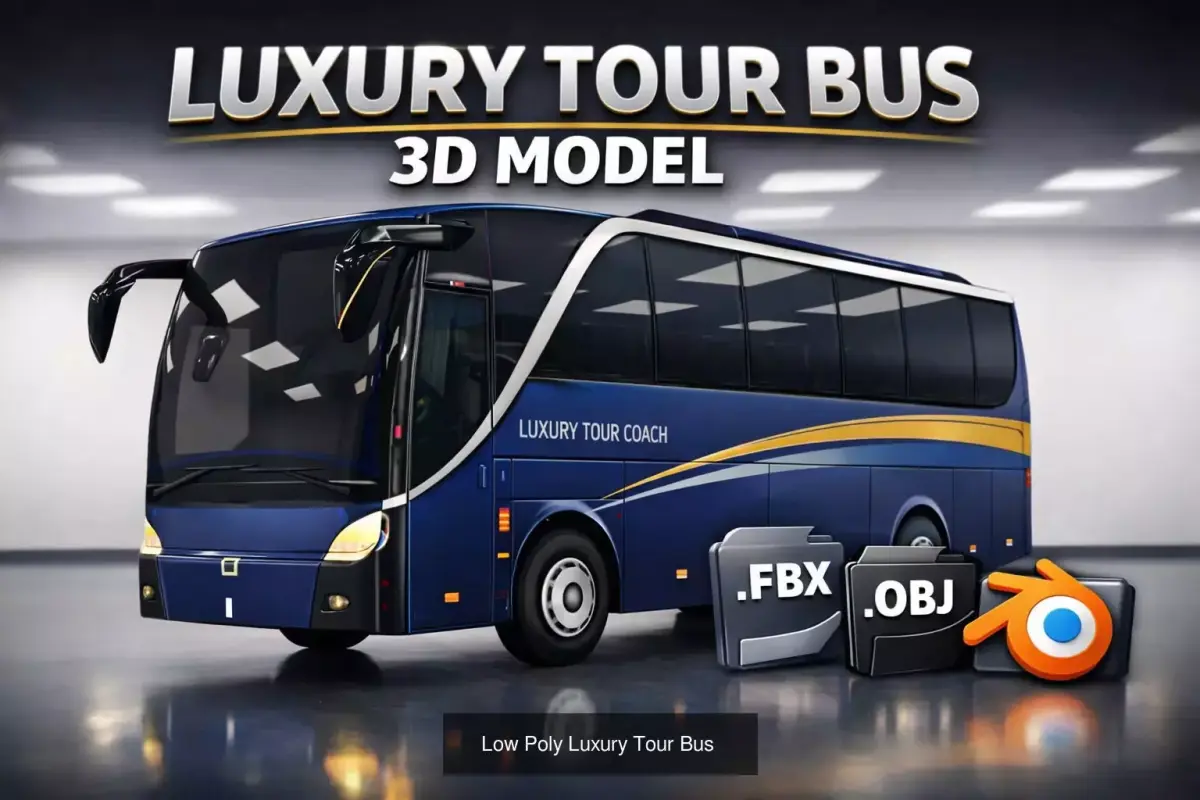 This Low Poly Bus Pack includes 5 high-quality, game-ready bus models, designed for games, simulations, mobile apps, VR/AR, and real-time projects.All models are optimized for performance while maintaining clean geometry and realistic proportions. Ideal for city transport systems, traffic simulations, racing games, and urban environments.What’s Included5 different low poly bus modelsCity BusLuxury Tour CoachSchool BusModern Transport BusesClean UVs and optimized topologyGame ReadyLow poly & performance optimizedSuitable for mobile, PC, and consoleEasy to customize materials and colorsThis Low Poly Bus Pack includes 5 high-quality, game-ready bus models, designed for games, simulations, mobile apps, VR/AR, and real-time projects.All models are optimized for performance while maintaining clean geometry and realistic proportions. Ideal for city transport systems, traffic simulations, racing games, and urban environments.What’s Included5 different low poly bus modelsCity BusLuxury Tour CoachSchool BusModern Transport BusesClean UVs and optimized topology Game ReadyLow poly & performance optimizedSuitable for mobile, PC, and consoleEasy to customize materials and colorsFile FormatsFBXOBJBLEND (Blender native) Software CompatibilityBlenderUnityUnreal EngineCinema 4DMaya3ds MaxAny engine supporting FBX/OBJFBXOBJBLEND (Blender native) Software CompatibilityBlenderUnityUnreal EngineCinema 4DMaya3ds MaxAny engine supporting FBX/OBJ