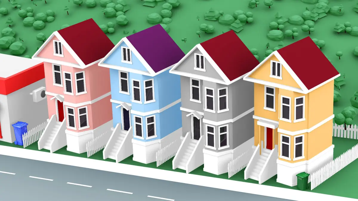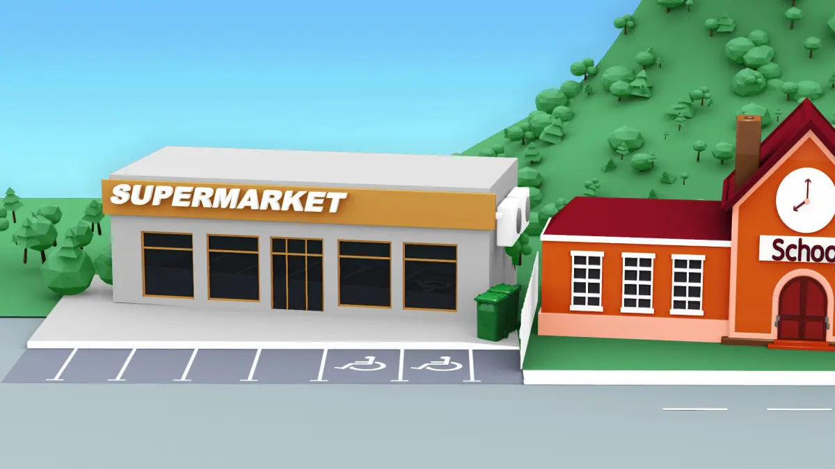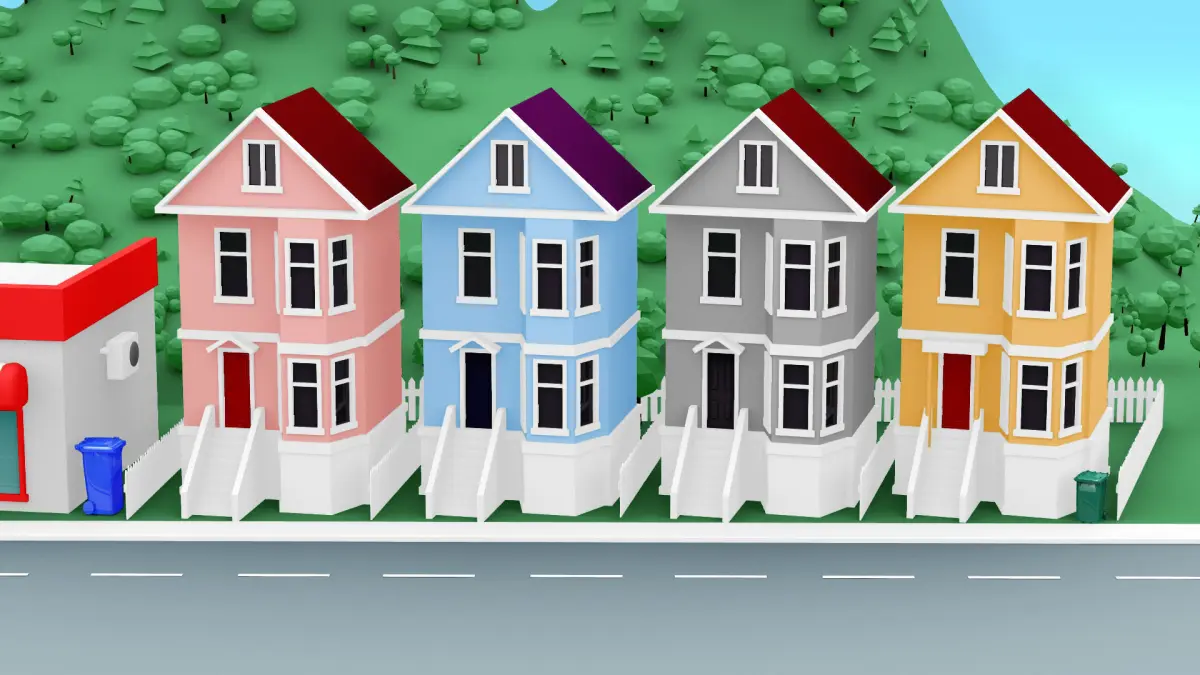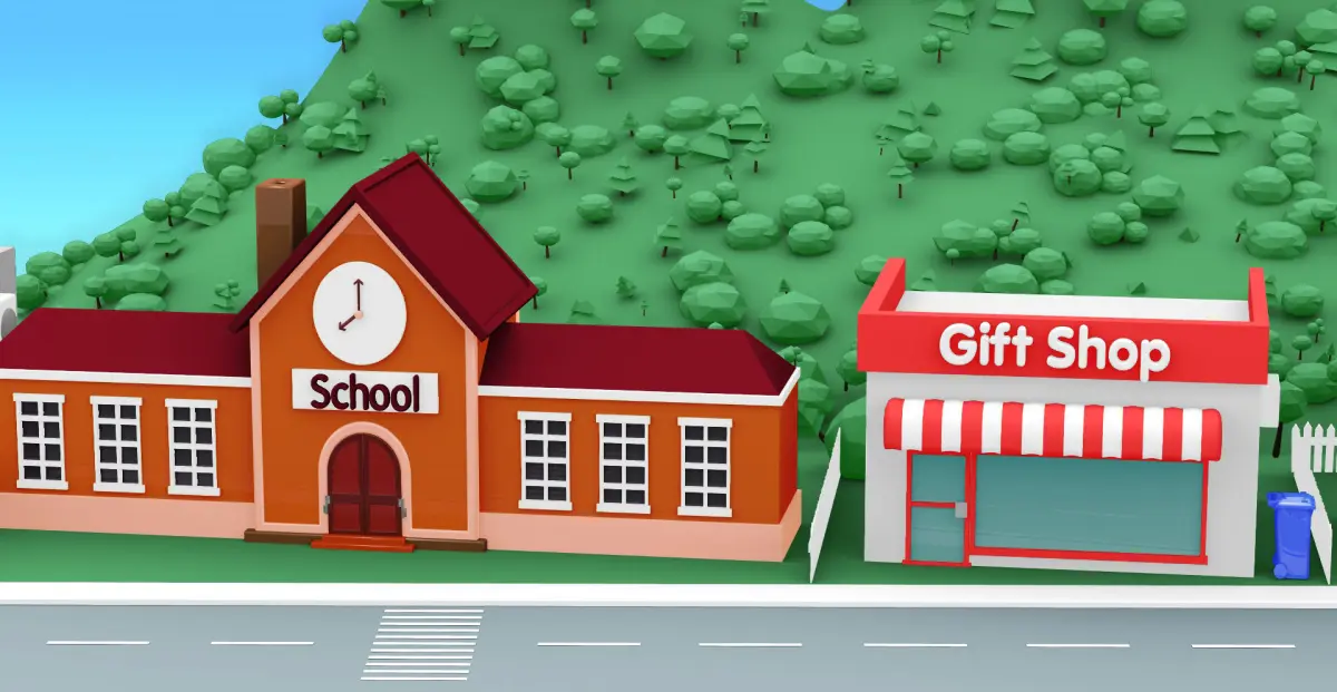 City cartoon-style 3D model with modeled