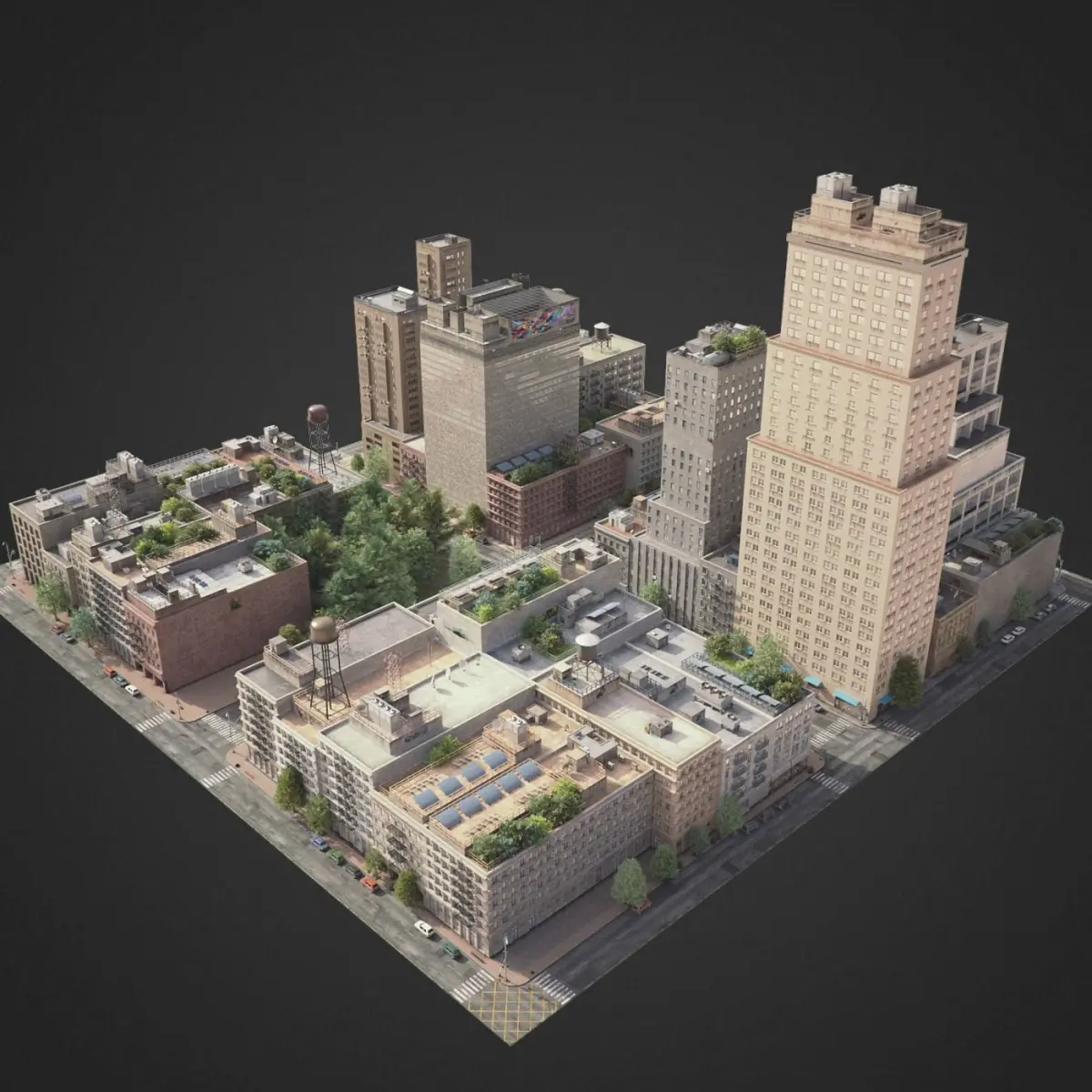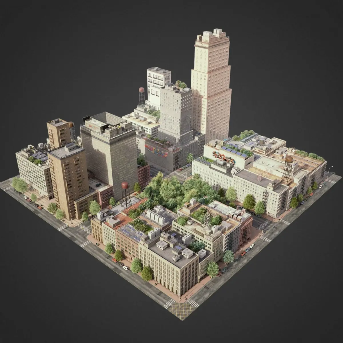 This is full 3d city model modeled based on americans cities. This is real world scale model. Whole scene setuped and fully ready to render. All materials setuped in Vray. Light setuped by HDRI and Dome light.