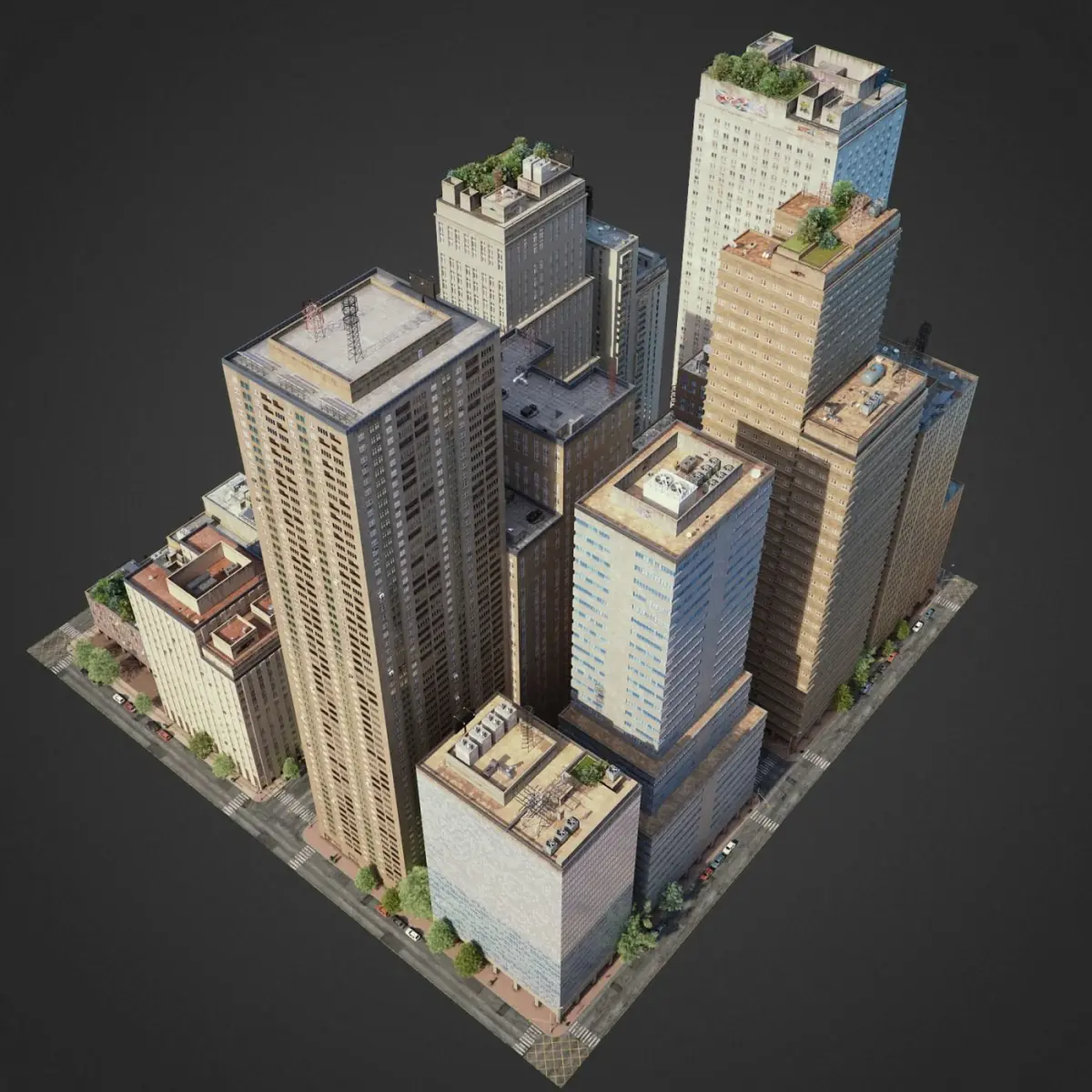 This is full 3d city model modeled based on americans cities. This is real world scale model. Whole scene setuped and fully ready to render. All materials setuped in Vray. Light setuped by HDRI and Dome light.