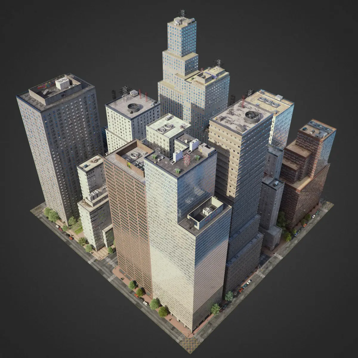 This is full 3d city model modeled based on americans cities. This is real world scale model. Whole scene setuped and fully ready to render. All materials setuped in Vray. Light setuped by HDRI and Dome light.