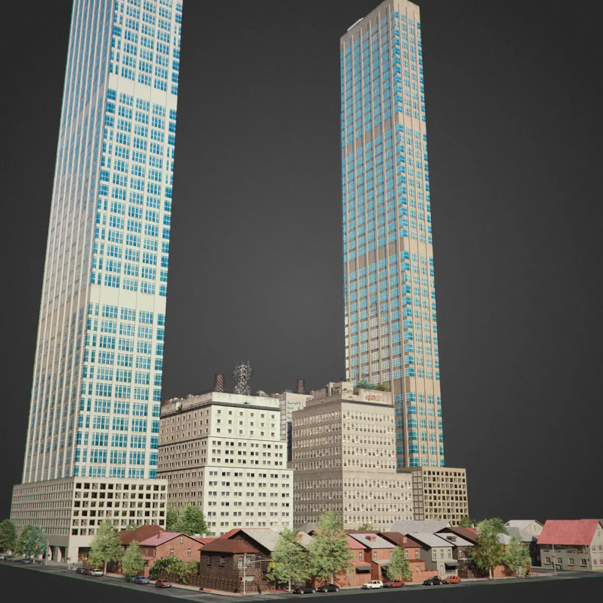 This is full 3d city model modeled based on americans cities. This is real world scale model. Whole scene setuped and fully ready to render. All materials setuped in Vray. Light setuped by HDRI and Dome light.