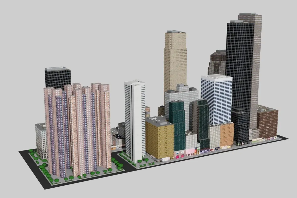 Low poly city block based on New York City ideal for game engines and VR.