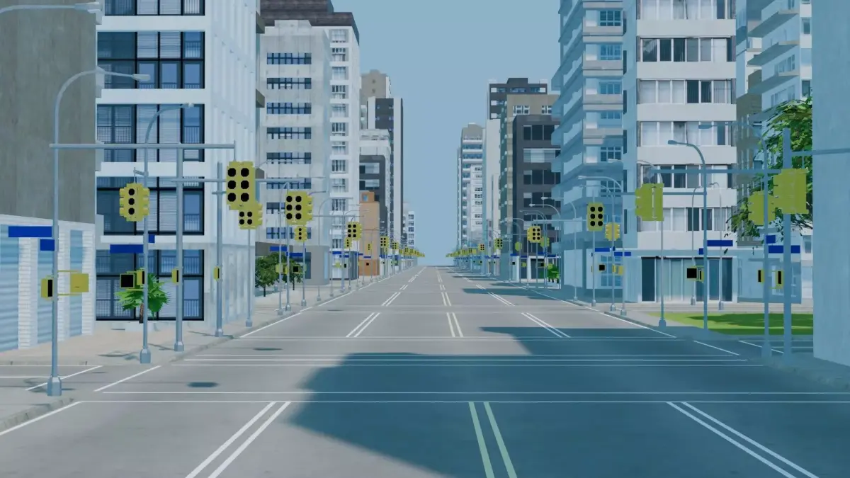 Game ready low poly 0.64x0.64km square city block. Great for first person, open world games, VR, and renders. Also included is the glb export file, with the textures packed. The textures include colour maps, and spec maps for the windows. The footpaths include normals maps. The trees include transparency maps for the leaves. Assets are low-poly trees, roads, traffic lights, buildings, and parks.