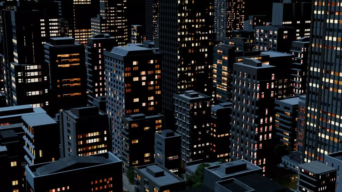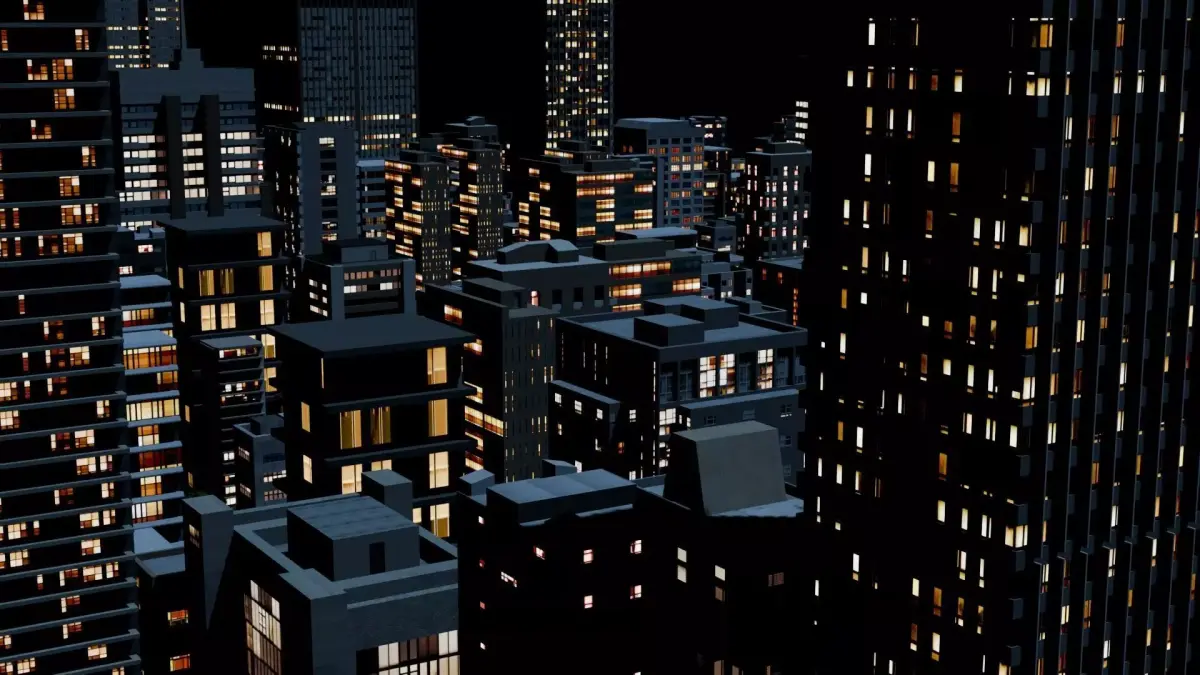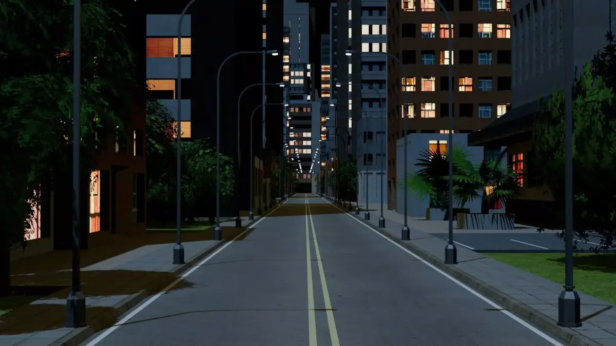 Game ready night time low poly 0.5x0.5km city block with lots of parks and trees. Great for first person, open world games, VR, and renders. Also included is the glb export file, with the textures packed. The textures include colour maps, spec and emit maps for the windows. The footpaths include normals maps. The trees include transparency maps for the leaves. Assets are low-poly trees, roads, traffic lights, buildings, and parks. The native blender file has Area lights for lighting the roads, and a Sun light to simulate moon lighting.