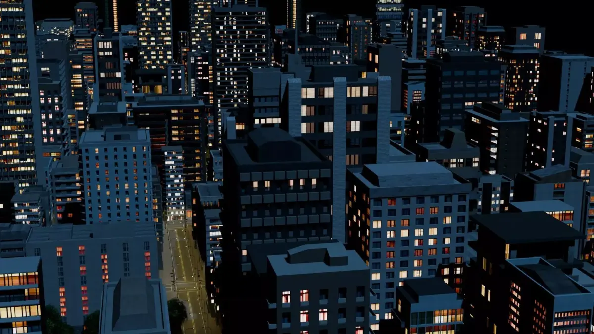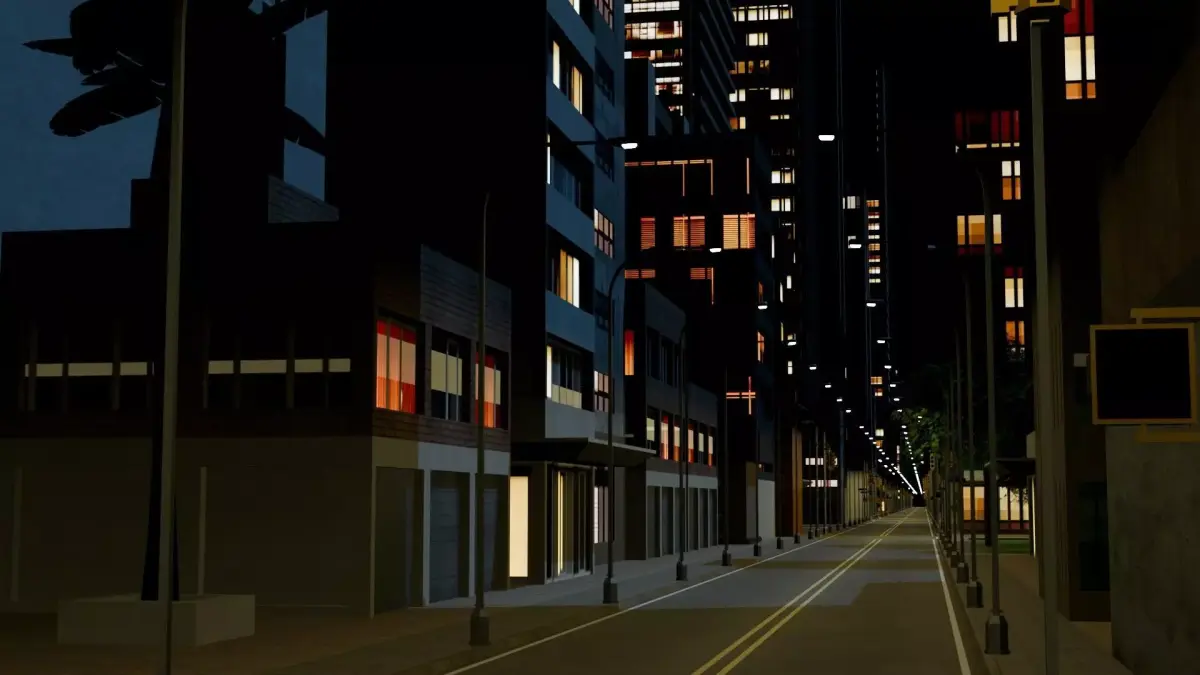 Game ready night time low poly 1 square km city block with lots of parks and trees. Great for first person, open world games, VR, and renders. Also included is the glb export file, with the textures packed. The textures include colour maps, spec and emit maps for the windows. The footpaths include normals maps. The trees include transparency maps for the leaves. Assets are low-poly trees, roads, traffic lights, buildings, and parks. The native Blender file has area lights for the street lighting, and a sun light to simulate moon lighting.