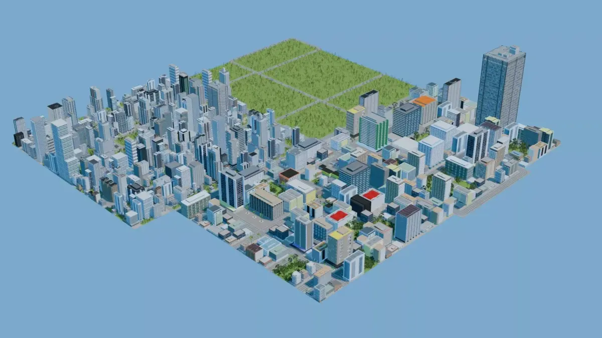 Huge, game-ready, low-poly 1 square km city block with lots of parks and trees. Great for first person, open world games, VR, and renders. Also included is the glb export file, with the textures packed. The textures include colour maps, and spec maps for the windows. The footpaths include normals maps. The trees include transparency maps for the leaves. Assets are low-poly trees, roads, traffic lights, buildings, and parks.