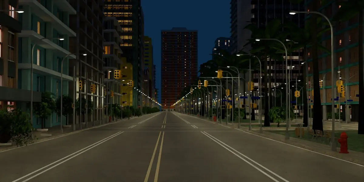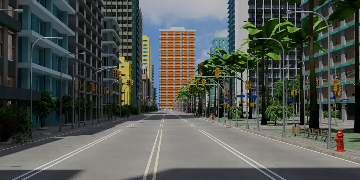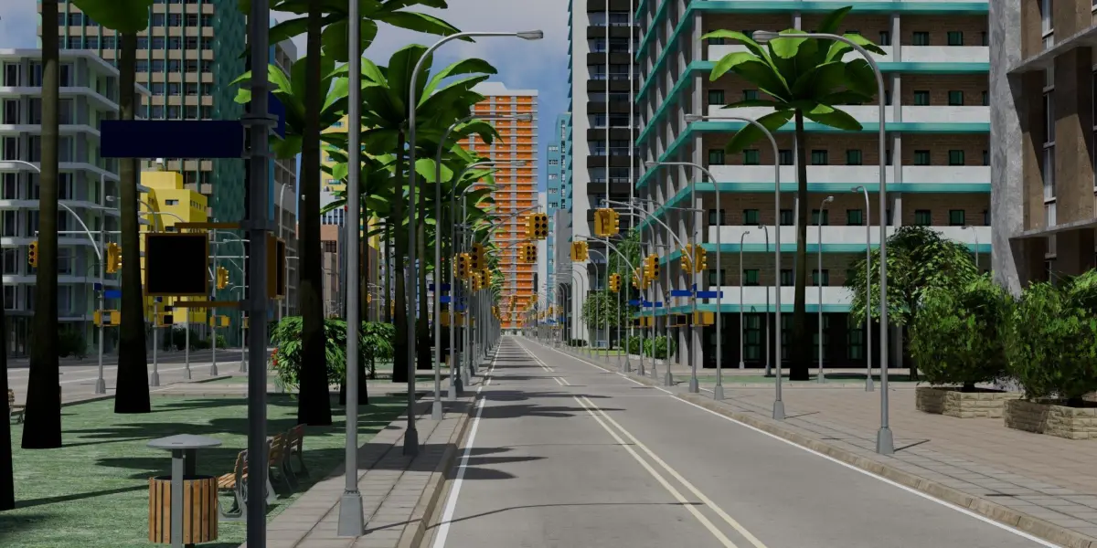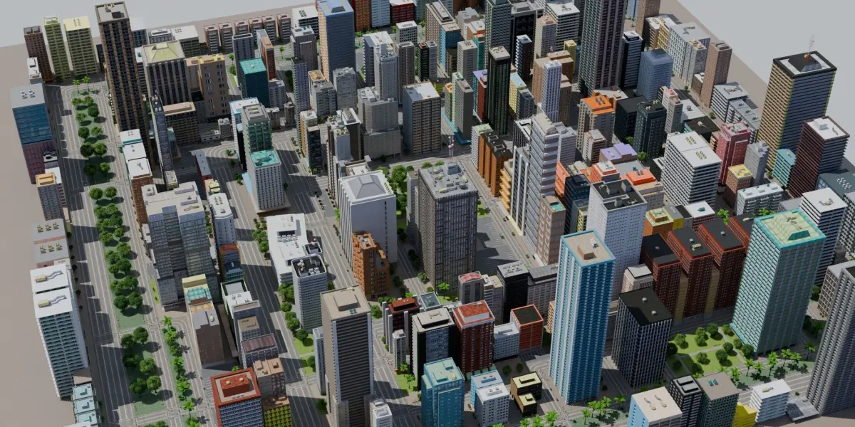 Complete, detailed, low poly city builder kit - a set of models covering a 700x700m area - perfect for open world games like GTA, VR, animations, and renders. Includes a day time and night time version. Native file is Blender 4.1, rendered using cycles. All the elements like buildings, roads, concrete footings, bus stops, trees, and etc are separate models which can easily be duplicated and moved around to create an even larger city. Assetts include roads, buildings, gas stations, parks, trees, shrubs, grass, bus stops, vending machine, fence, fire hydrant, rooftop HVAC equipment, communications towers, and more. Materials include color textures, spec and emission maps for the glass windows, normal maps for the footpaths, transparency maps for the trees, and more. Care has been taken to make each building appear unique, so that every street corner has a distinctive look. There are no trademarks or copyright symbols so this kit can be used for commercial purposes.