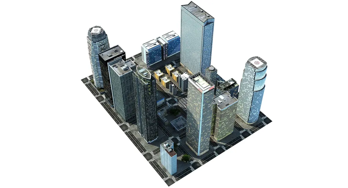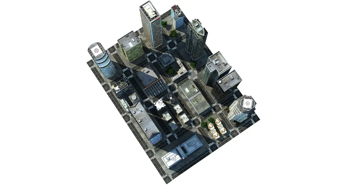 3d model of low poly generic city.
