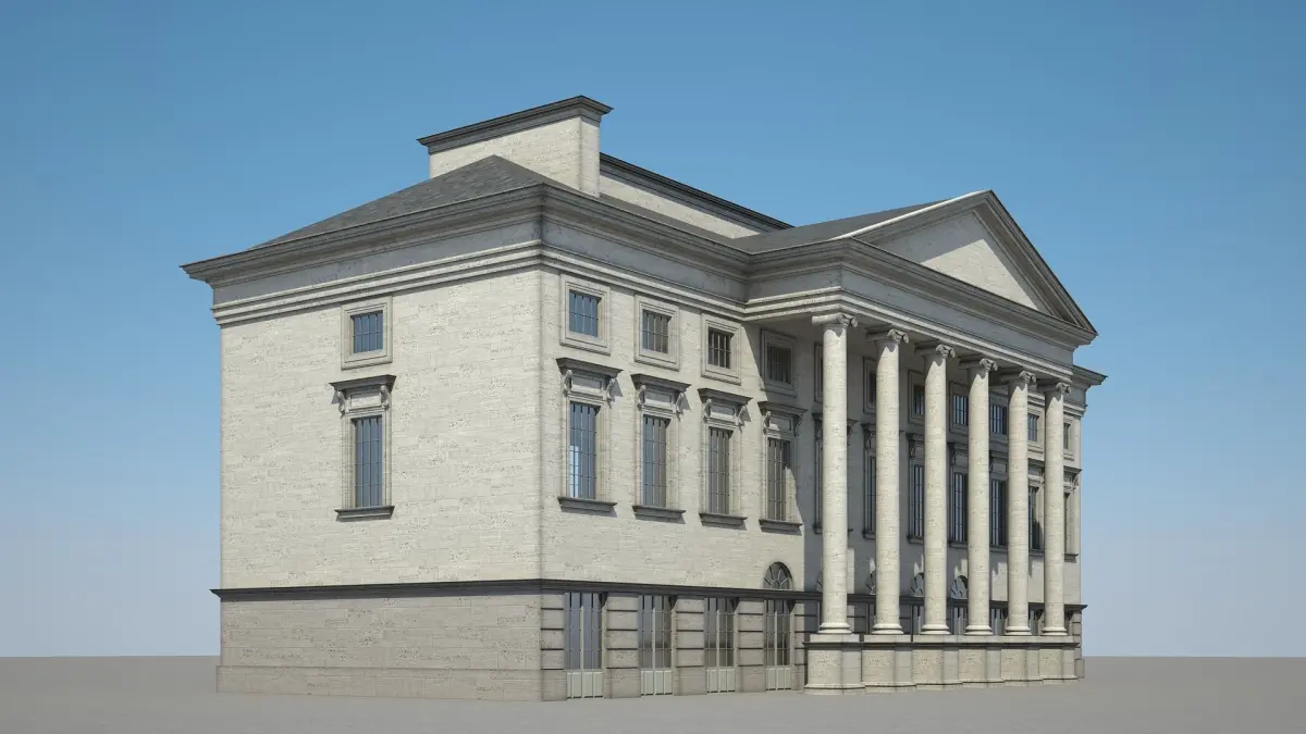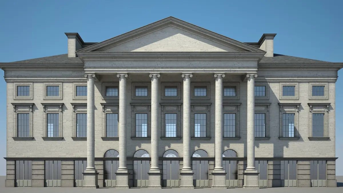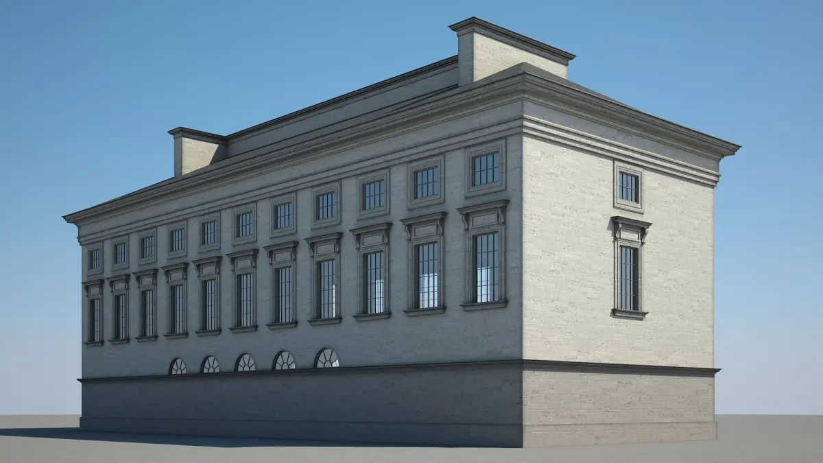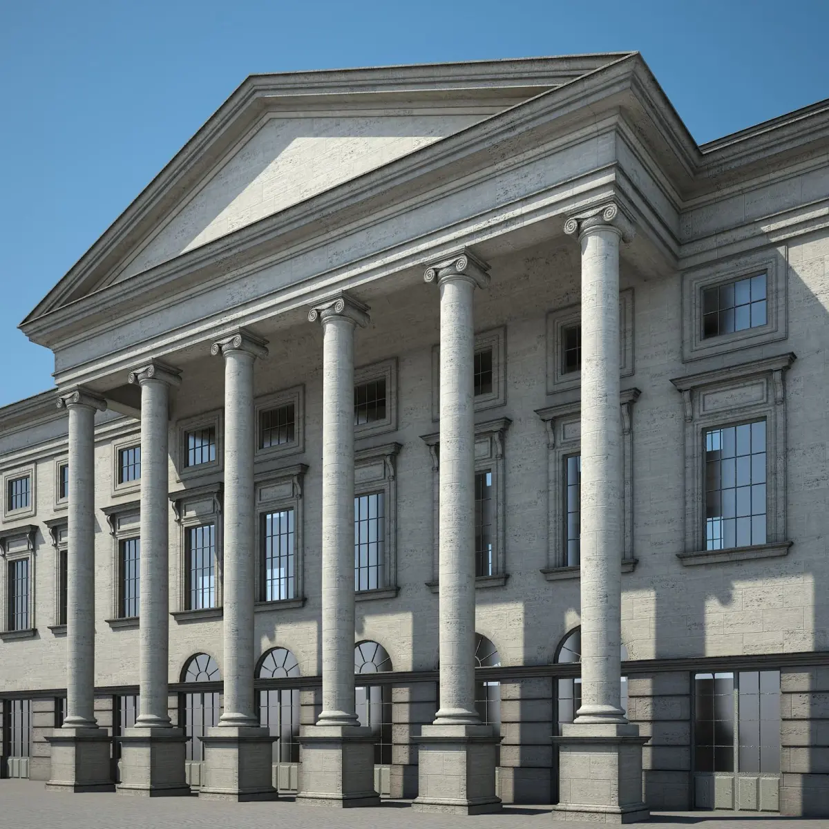 Detailed model of a classical style building. Preview images have been rendered with Vray.
