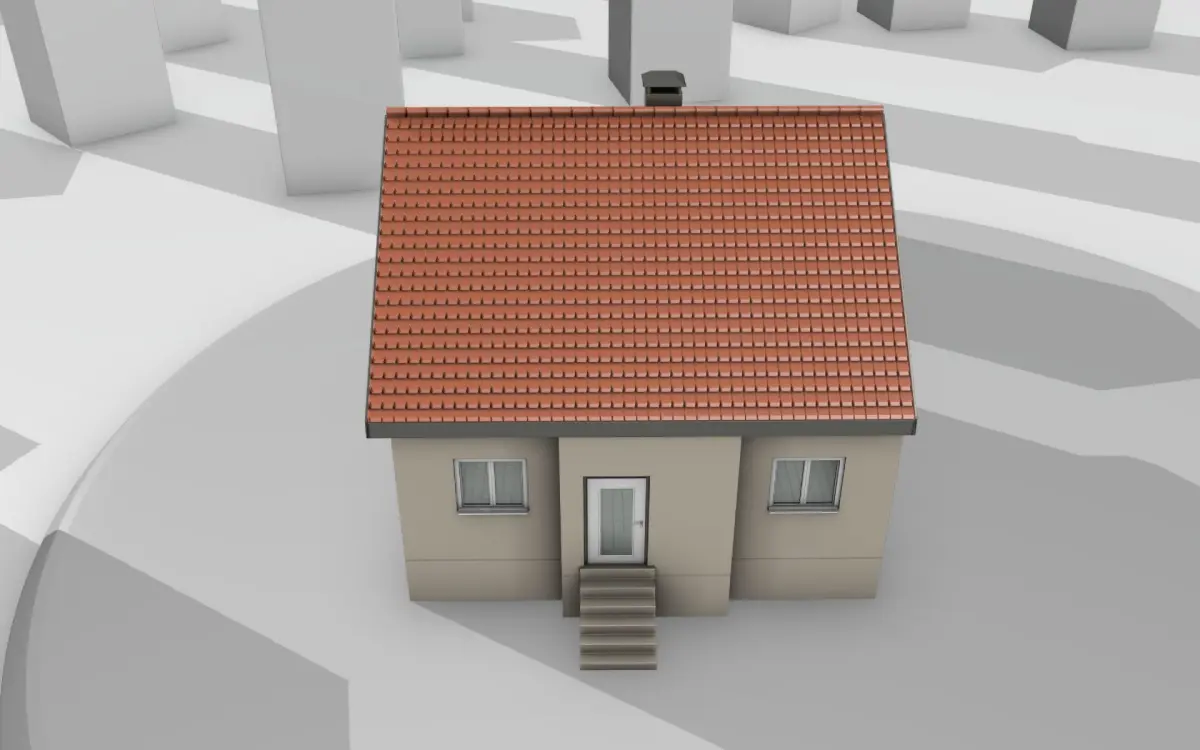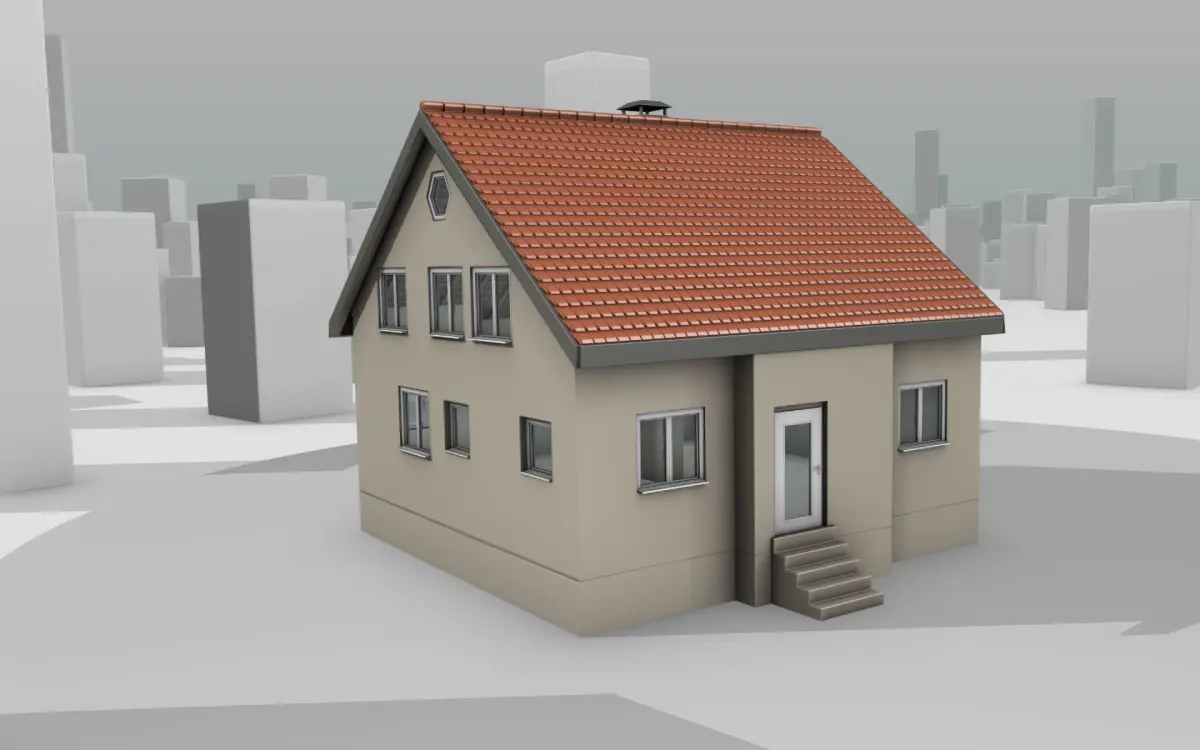 Here is a mid-poly city-houses with red roof and skinyellow walls.