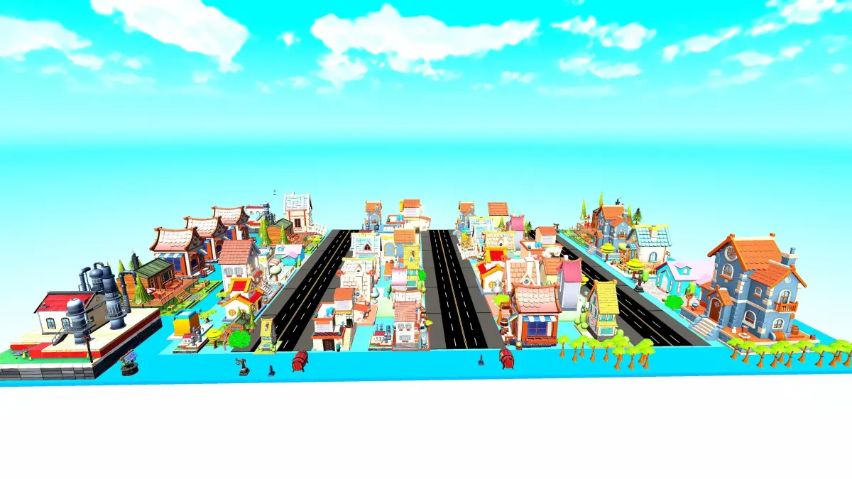A complete city house collection featuring 20 unique stylized house designs. This pack includes various architectural styles and colorful details perfect for building stylized towns or fantasy cities. Optimized and game-ready for Unity, Unreal Engine, and Blender, it comes with an organized Unity prefab scene, clean topology, and low-poly models with high-quality textures. Ideal for mobile and PC games, simulations, or 3D environments.Note : All Full Prefabs Ready To Drag And Drop Into Unity Or Unreal Scene and Skyox Include The Pack , 4 Kinds Of Trees , Barrels , Road , Easy to make Awsome City **Includes:**20 stylized house modelsPre-built Unity prefab with layoutFBX, OBJ, Blender, and Unity asset formatsGame-ready and mobile-friendlyColorful textures with PBR materialsOrganized UVs and grouped meshes
