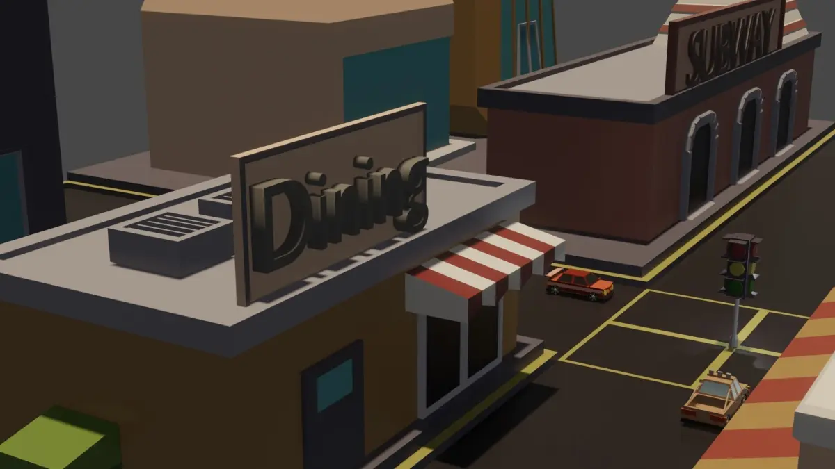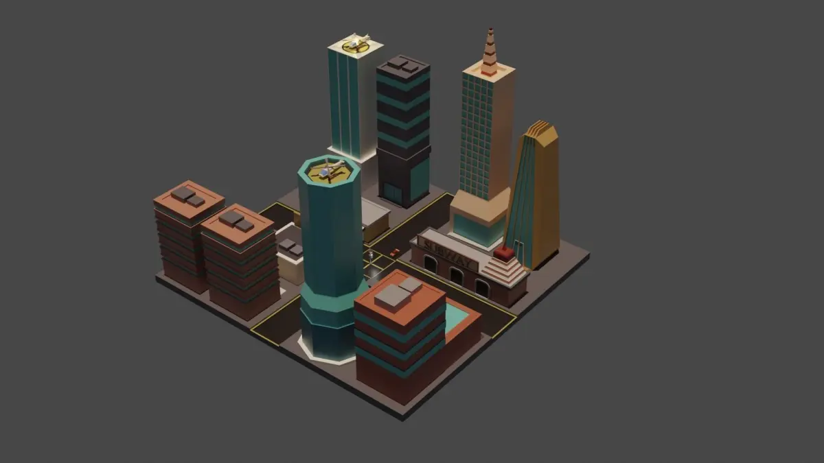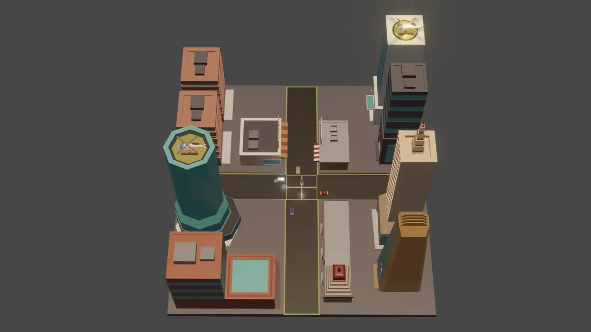 This game ready city can use in any game engine easy to use got cars and helicopter can animate separated can use as game map or background native file attaced render in cycle no need to edit just drag and drop when design gamecan use for smart phone game or big cartoon games very light files not so heavy