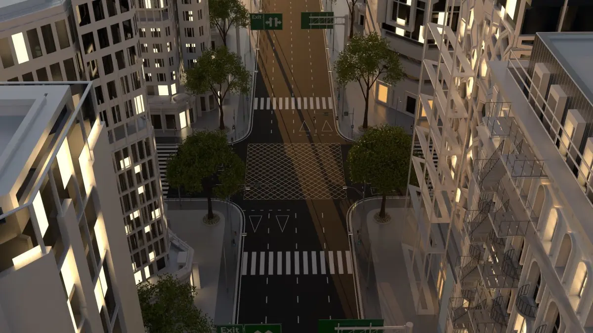 Detailed 3d scene of a city intersetion.Previews were rendered with Marmoset Toolbag 4 (included)All buldings and trees are individual meshes.Materials are named appropriately and assigned to all objects for easy editing.