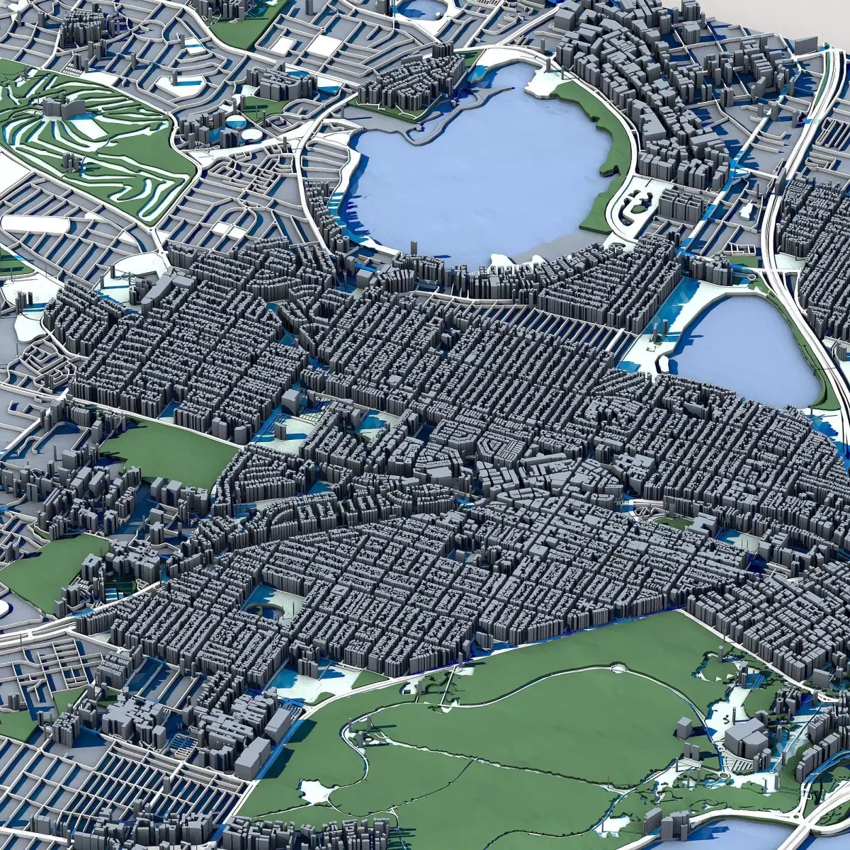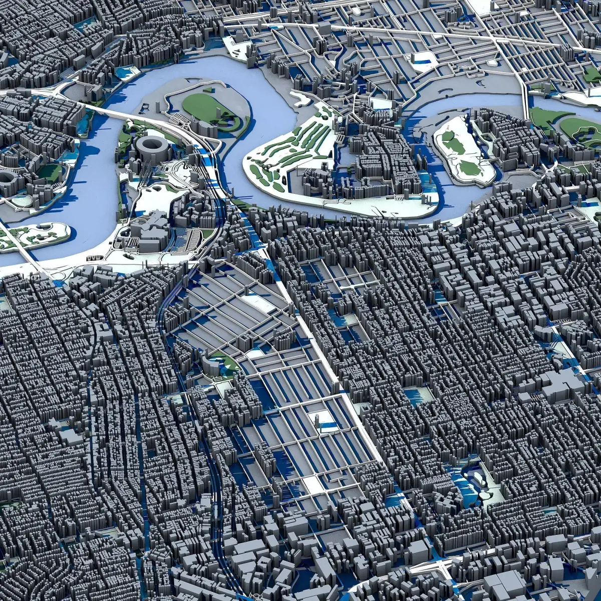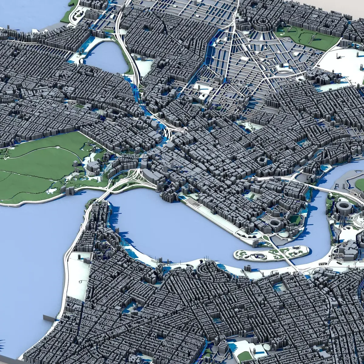 The .ZIP folder contains separate .STL files – buildings, water, vegetation, base etc.