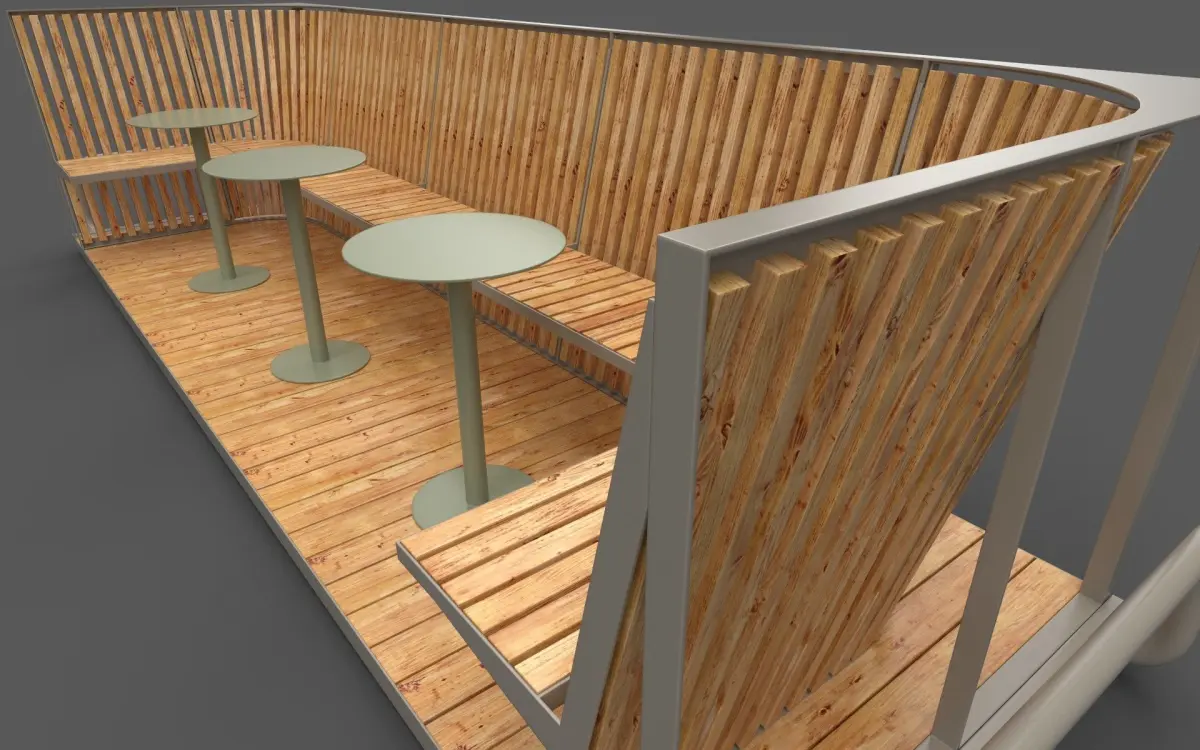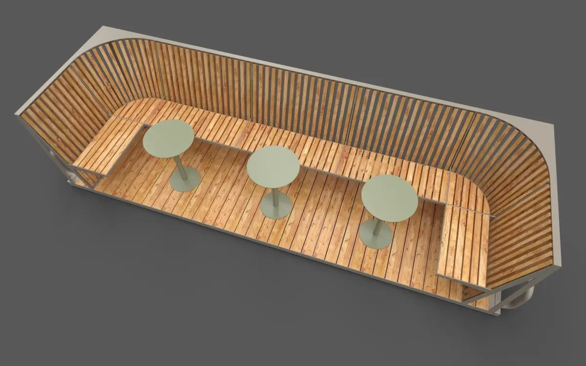 Modular city park platform, made from coated steel and wooden planks. 4k PBR and UHDRP textures.