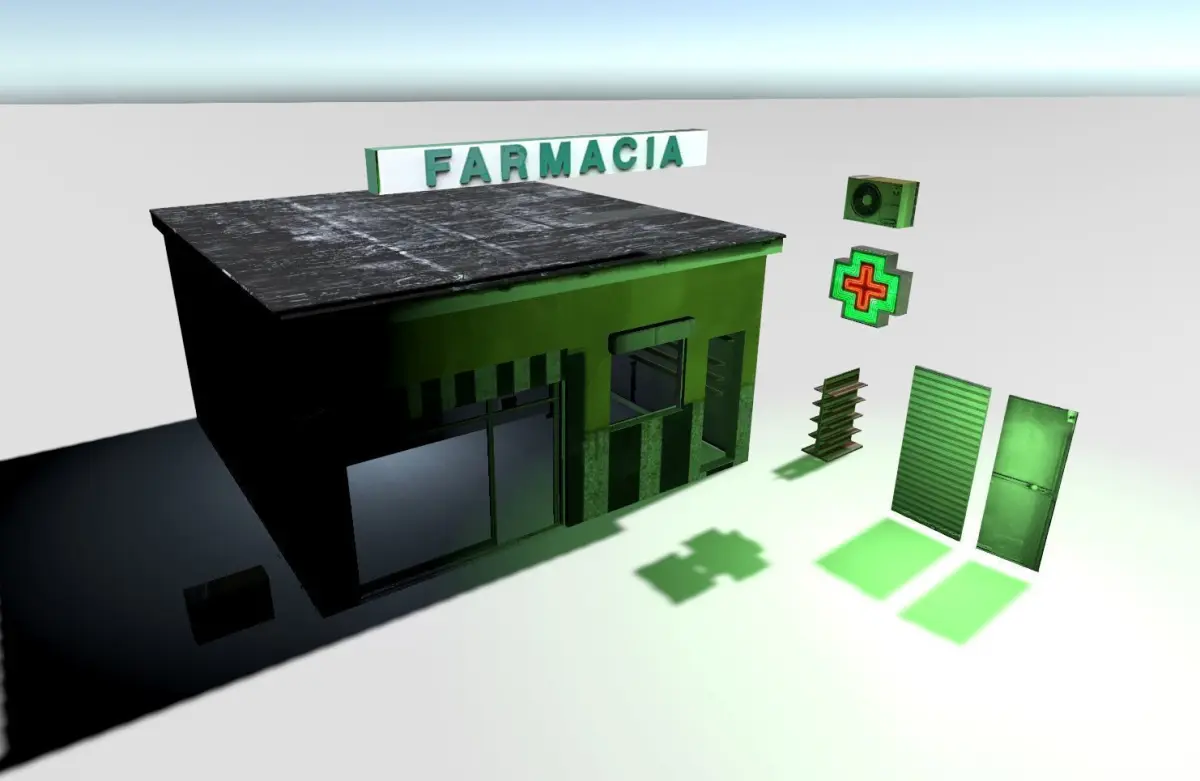Low poly and small customizable pharmacy.LowPoly for Videogames.