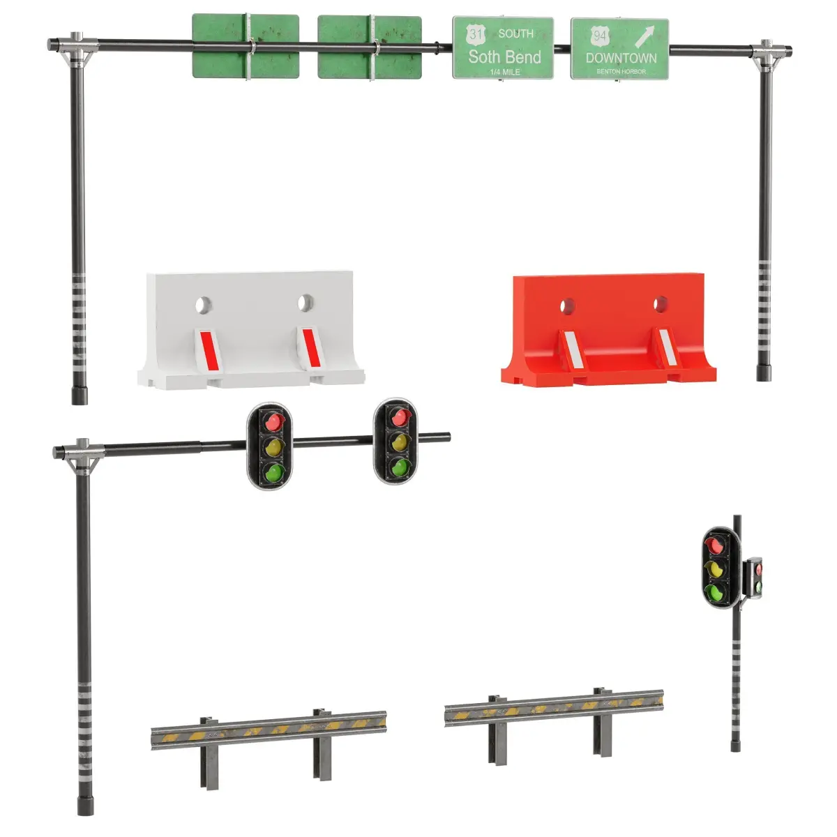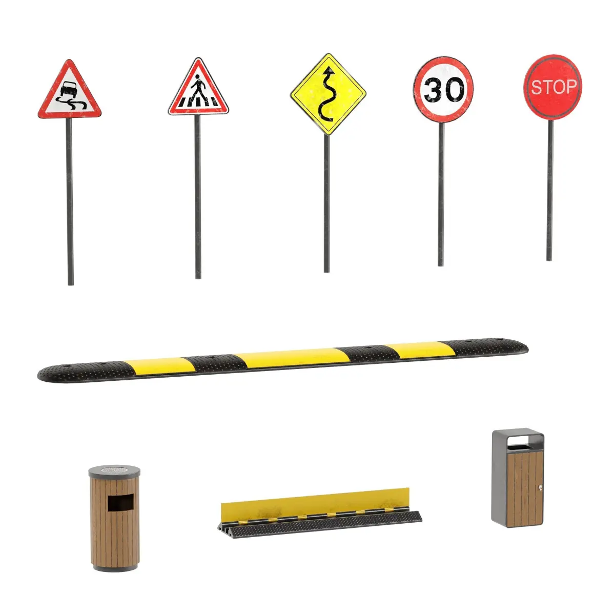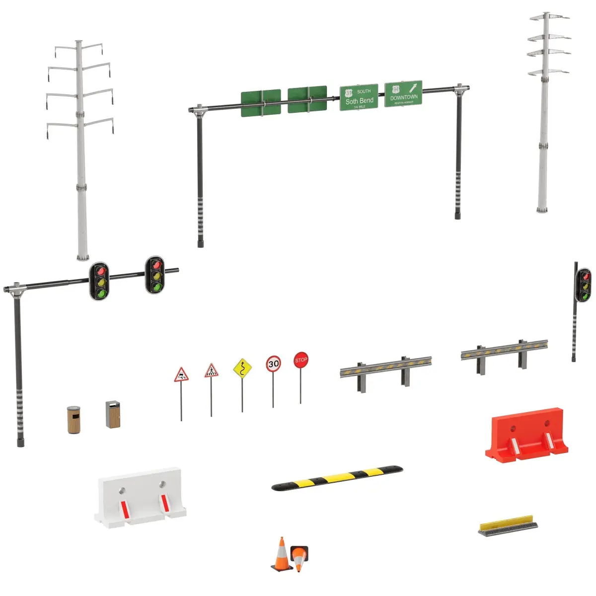 City Roads Props Set 12 Steel Tubular Electric Pole And InsulatorRoad And Highway SignsTraffik LightsTraffik Cone Road BarrierSpeed BumpCable predatorRecyclesMax Version is 2018 CoronaFbx And ObjBlender Cycles