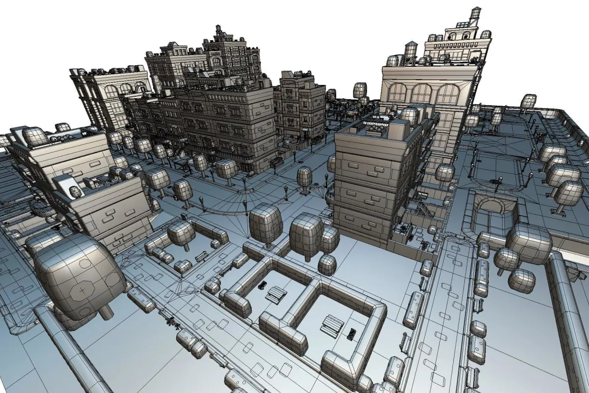 This is a set of 500 city building blocks in Proto Series style. Included are modular street construction tiles, trees, building blocks for apartment and office buildings, a canal system, park path system, hedge system and rooftop and street decoration objects for building a cartoony and much more to help you build your own cartoony urban city environment!