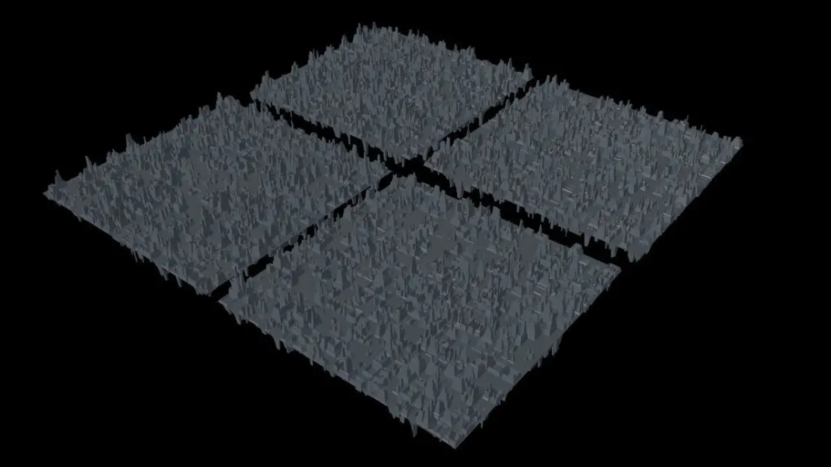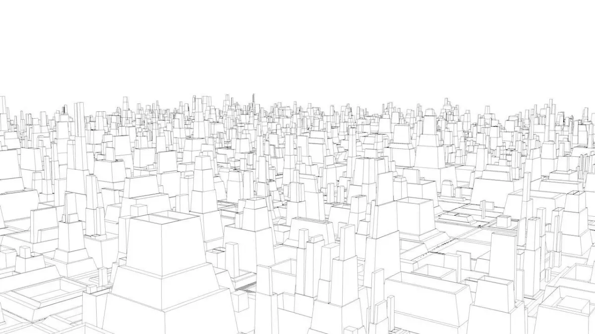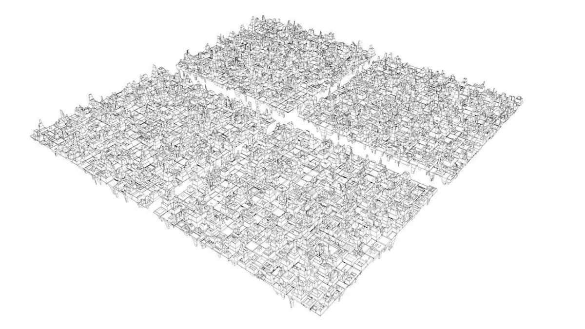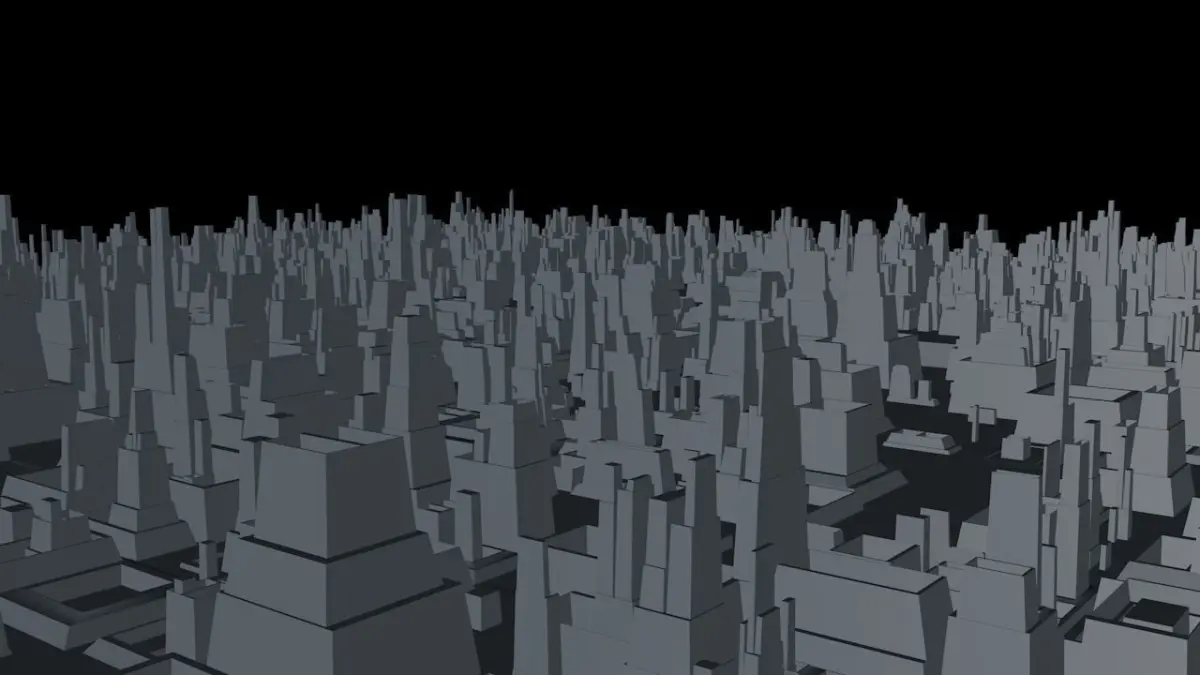 4 two-sided planes with tons of city shaped greebles.
